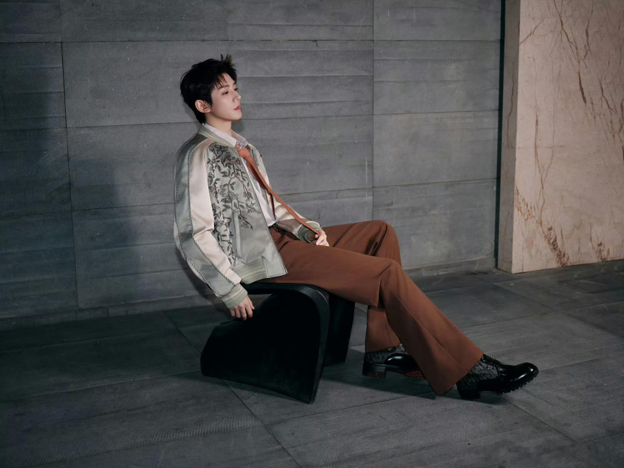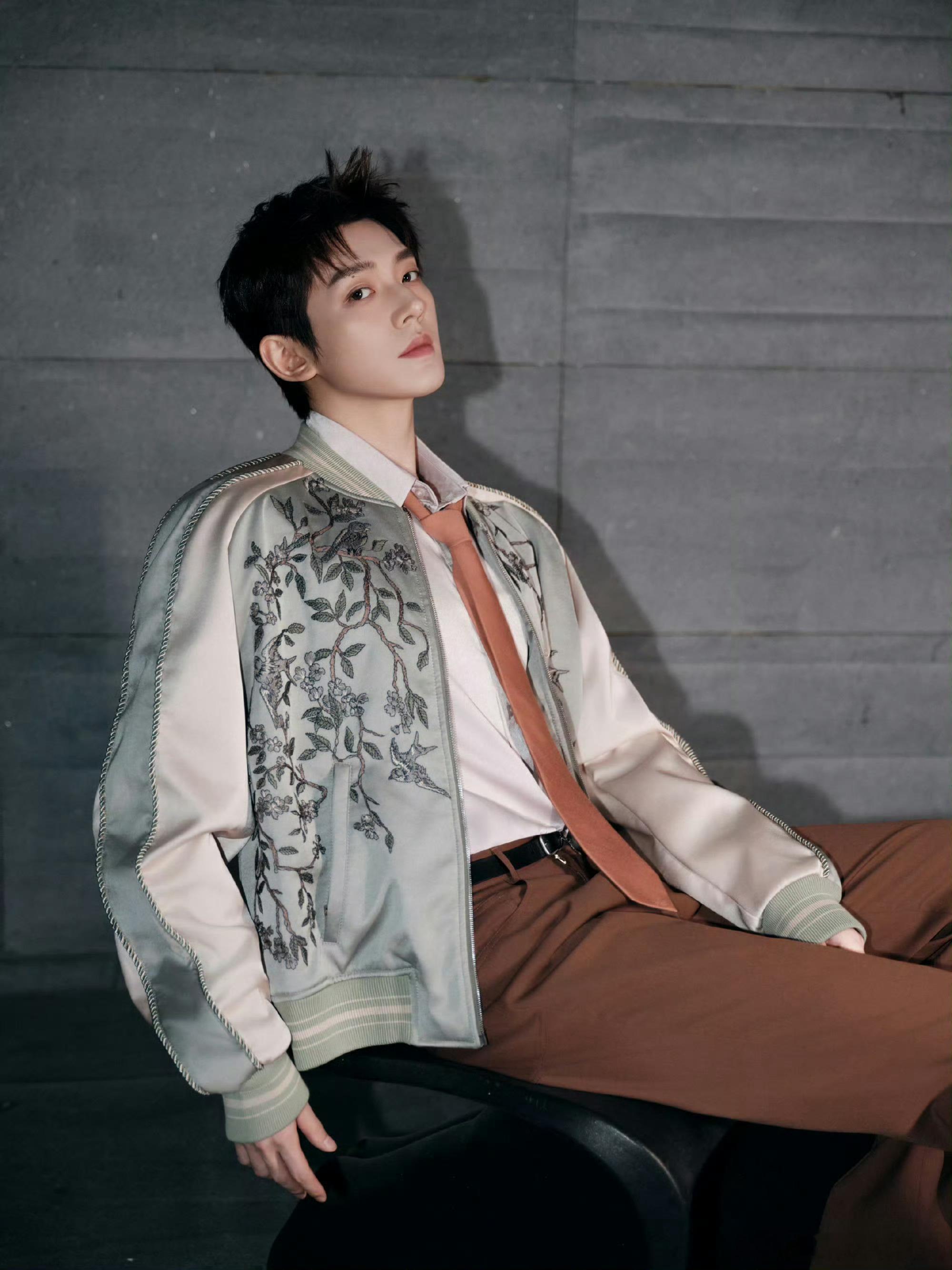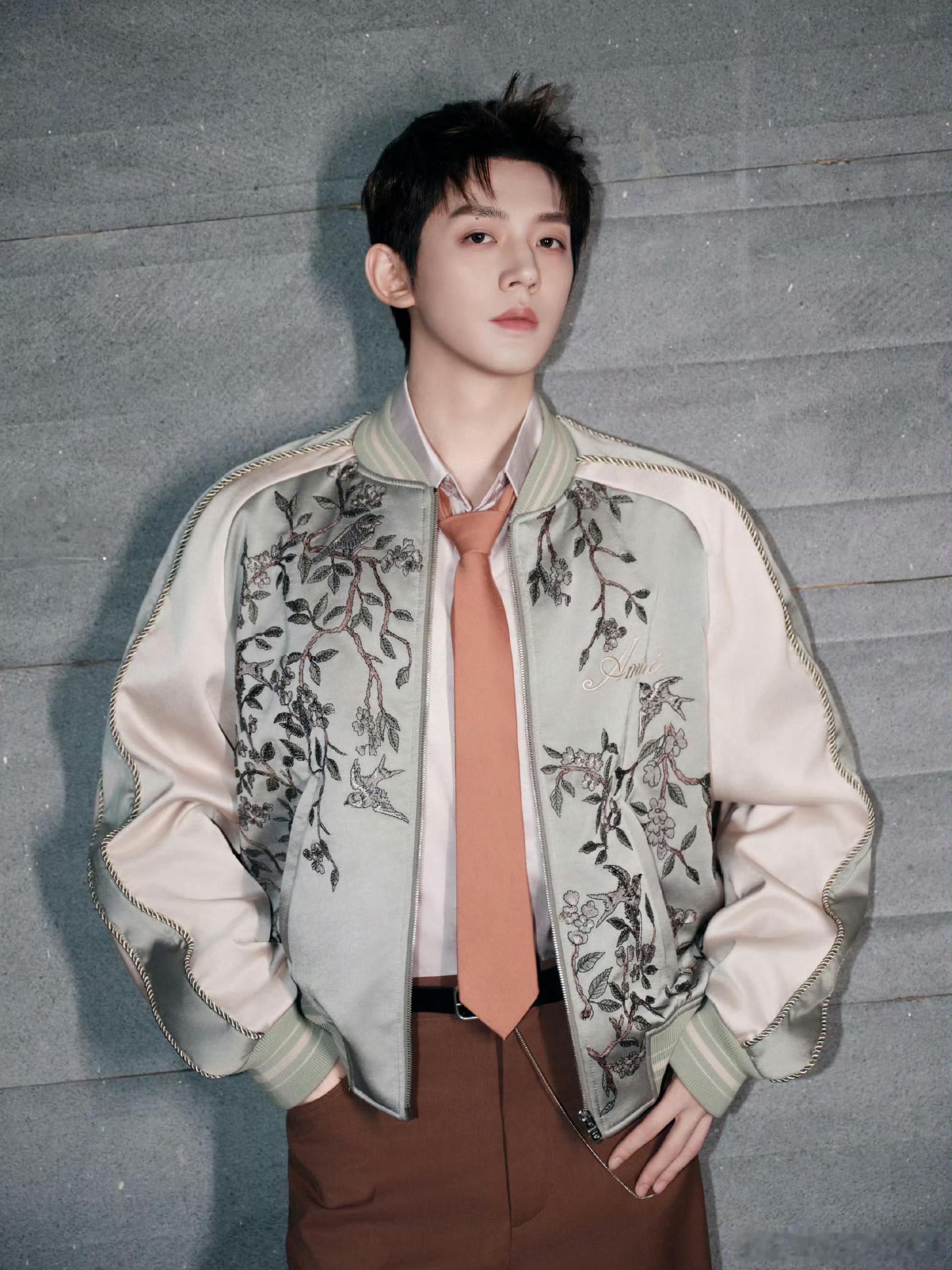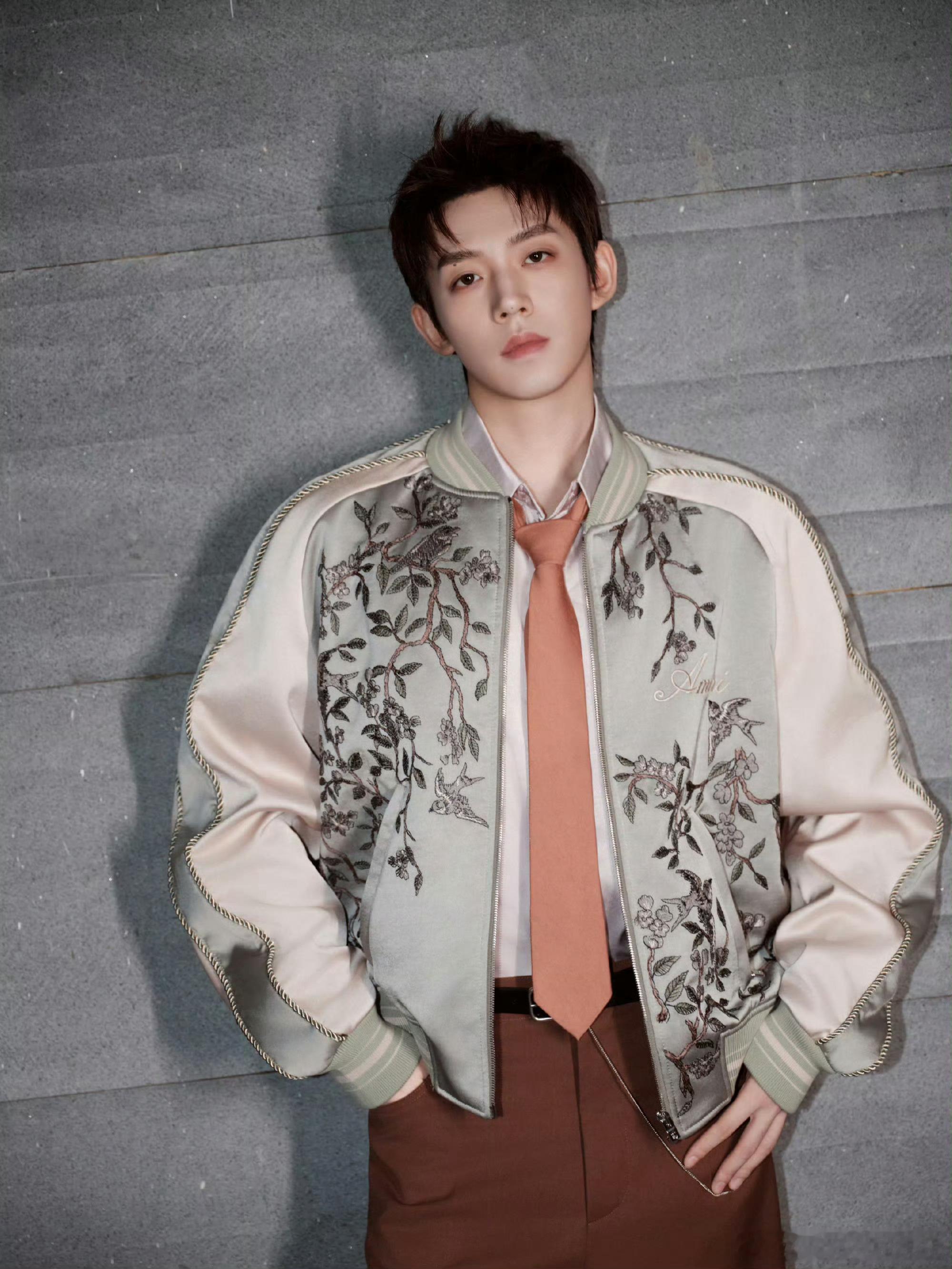 邓为今天一组大片,身穿Amiri 2026春夏系列刺绣夹克套装,今天还录制了五四晚会根正苗红青年