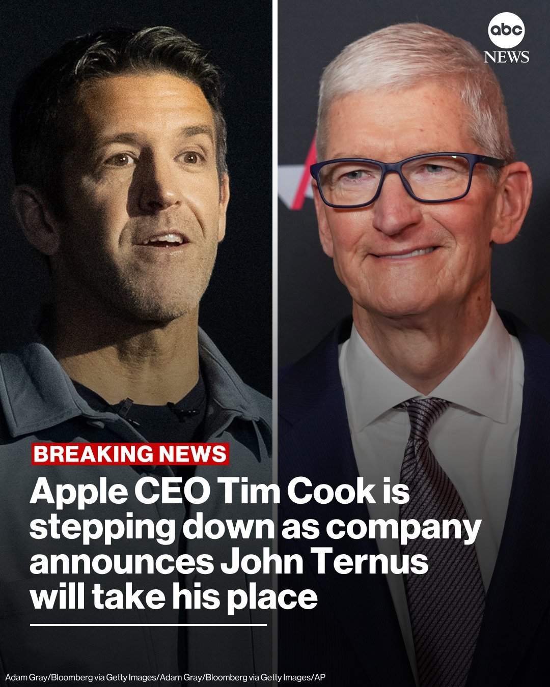 库克将卸任苹果CEO蒂姆·库克正式宣布将卸任苹果公司CEO,由现任硬件工程高级副