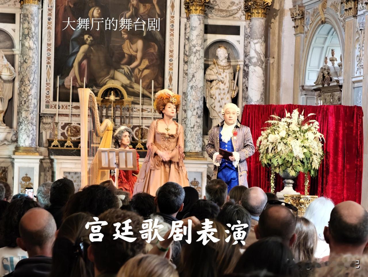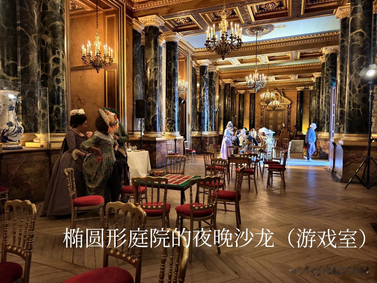 华丽繁复的服饰,金碧辉煌的王座寝室,复古的家具,大舞厅里的歌剧表演,游戏厅的沙龙聚会,还有表演者的眉目传情,都让我们感到很穿越,但又栩栩如生。