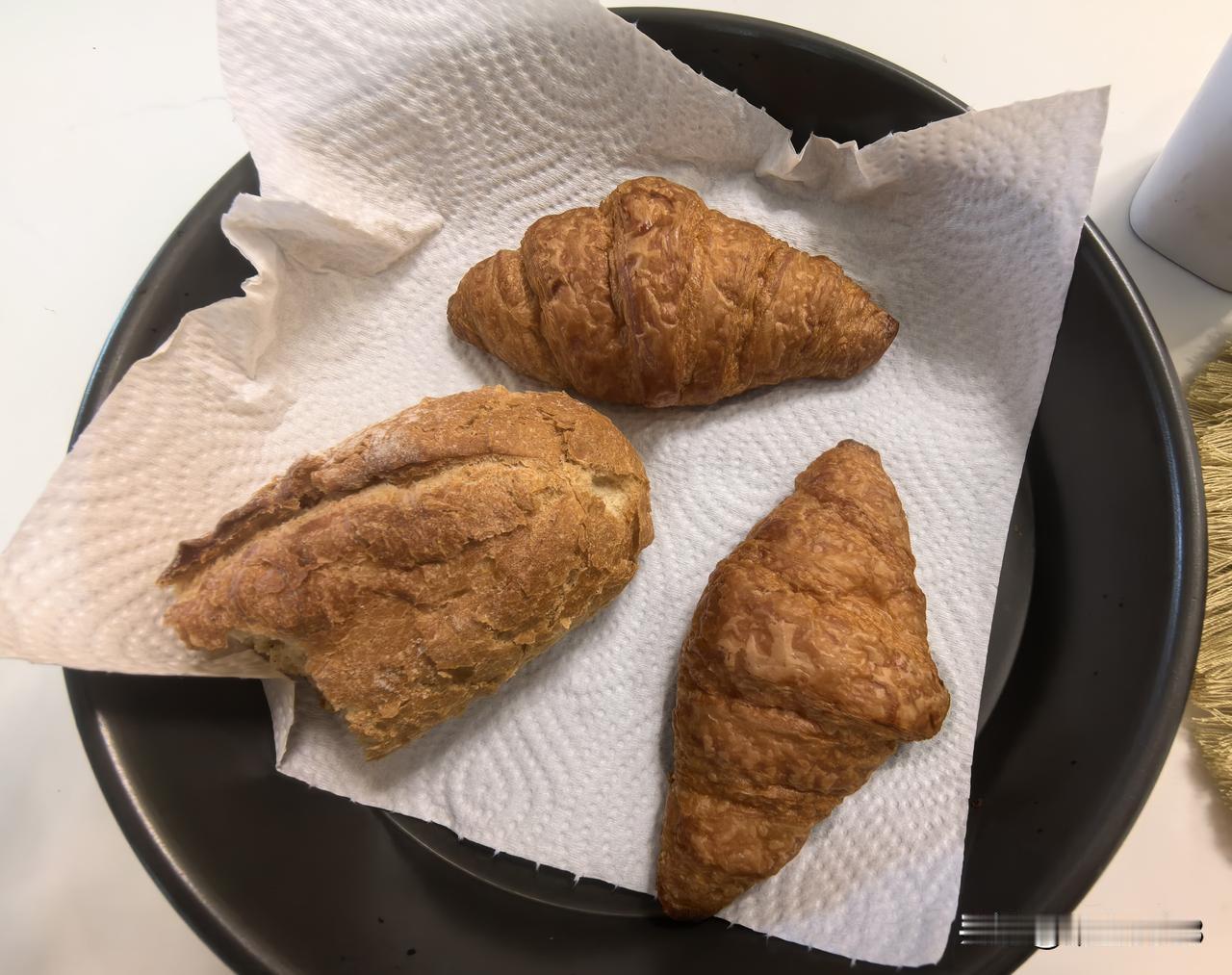 一盒可颂,16个,30多元。能吃好几天。两根法棍23元,切小块冻冰箱,也能吃好几天。