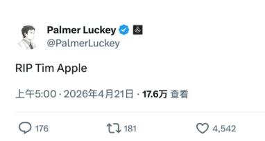 2、虚拟现实公司Oculus VR创始人帕尔默·拉奇:“蒂姆·苹果,走好(RIP Tim Apple)”。这里借用的是,美国总统唐特朗普2019年在白宫发生的著名“口误”事件