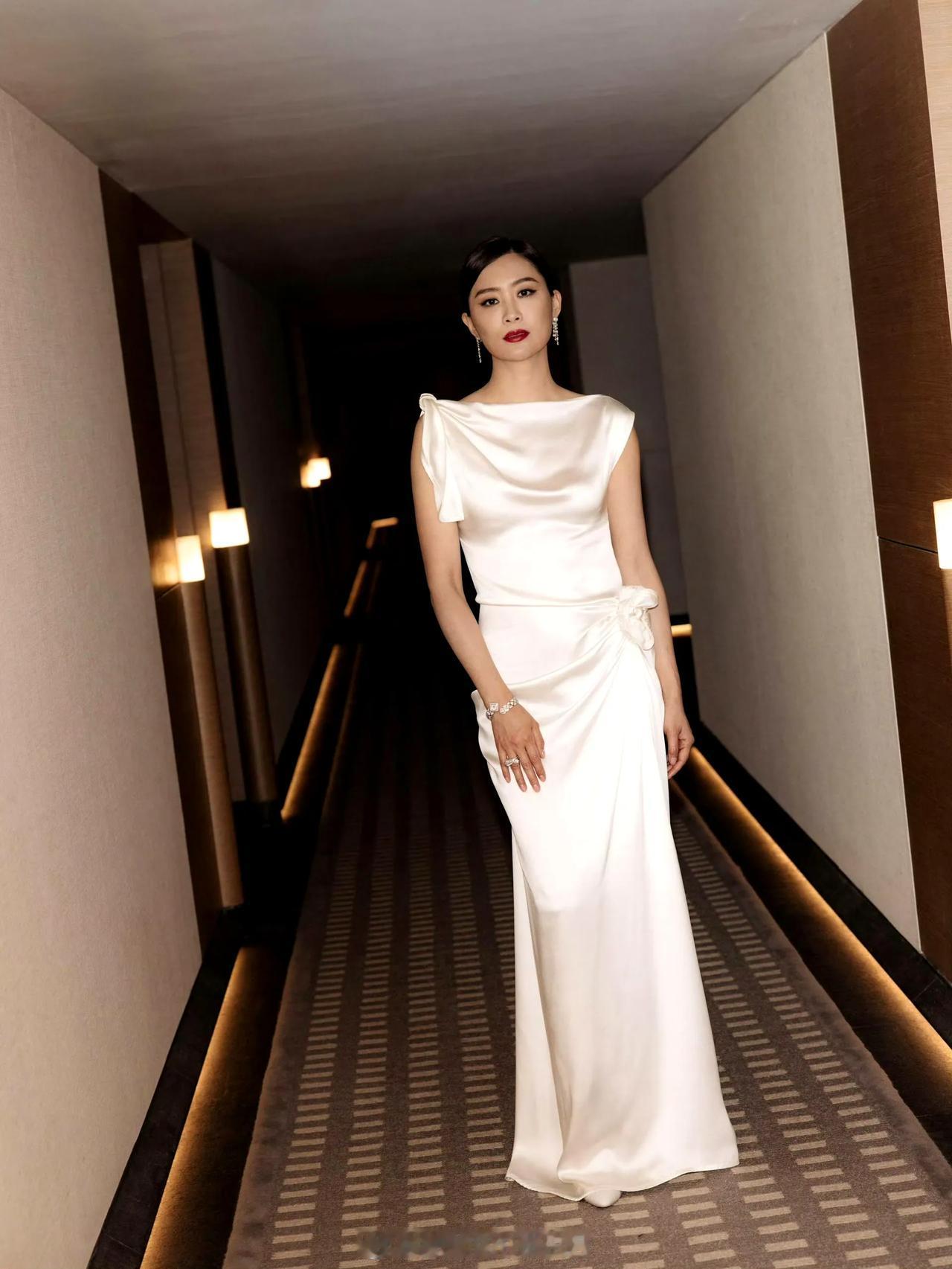 44岁陈法拉杀疯了!昨晚金像奖红毯,她身穿Chanel白色丝缎长裙亮相,生图白到发光,肩颈线优雅舒展。