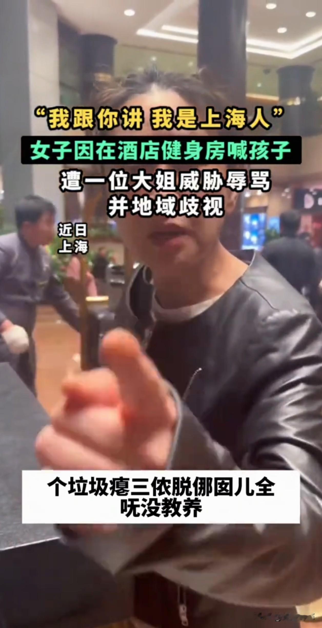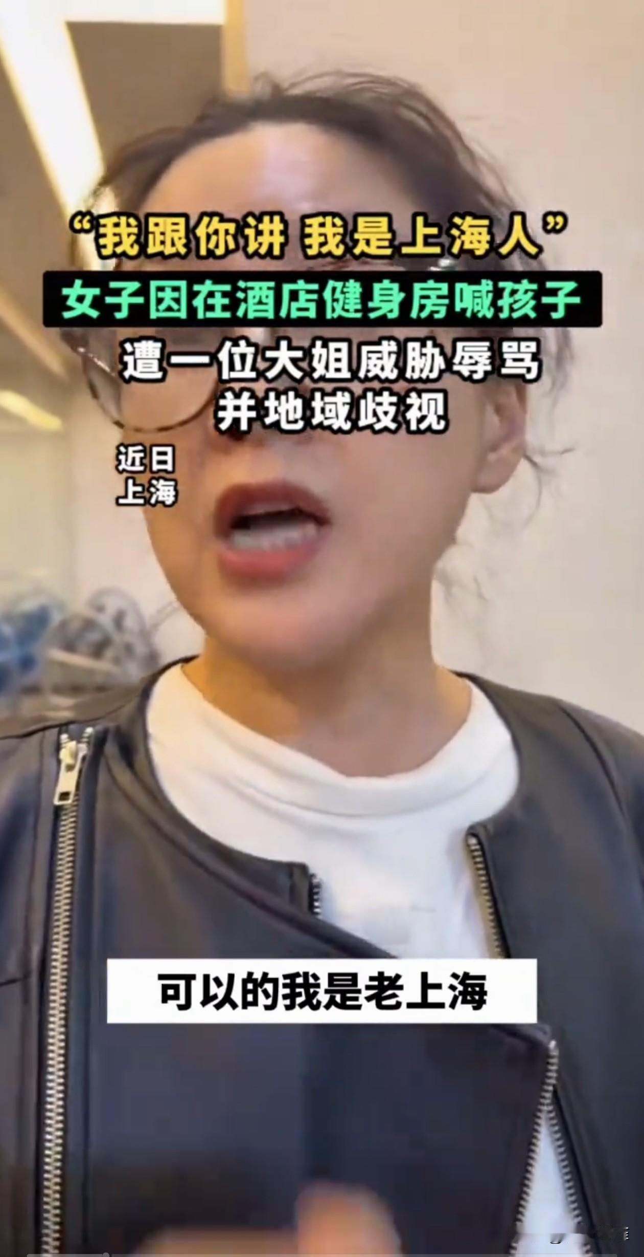 上海,一女子在酒店健身房健身,正常喊了几声女儿的名字,不料,一位上海大妈突然发脾气,直接怼女子:我跟你讲我是上海人,我不准你们外地人乱叫。