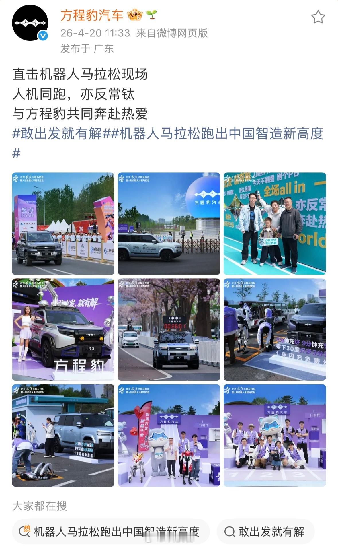 今年机器人跑半马也太快了、方程豹汽车护航机器人马拉松即刻出发!方程豹守护全球首次机器人马拉松