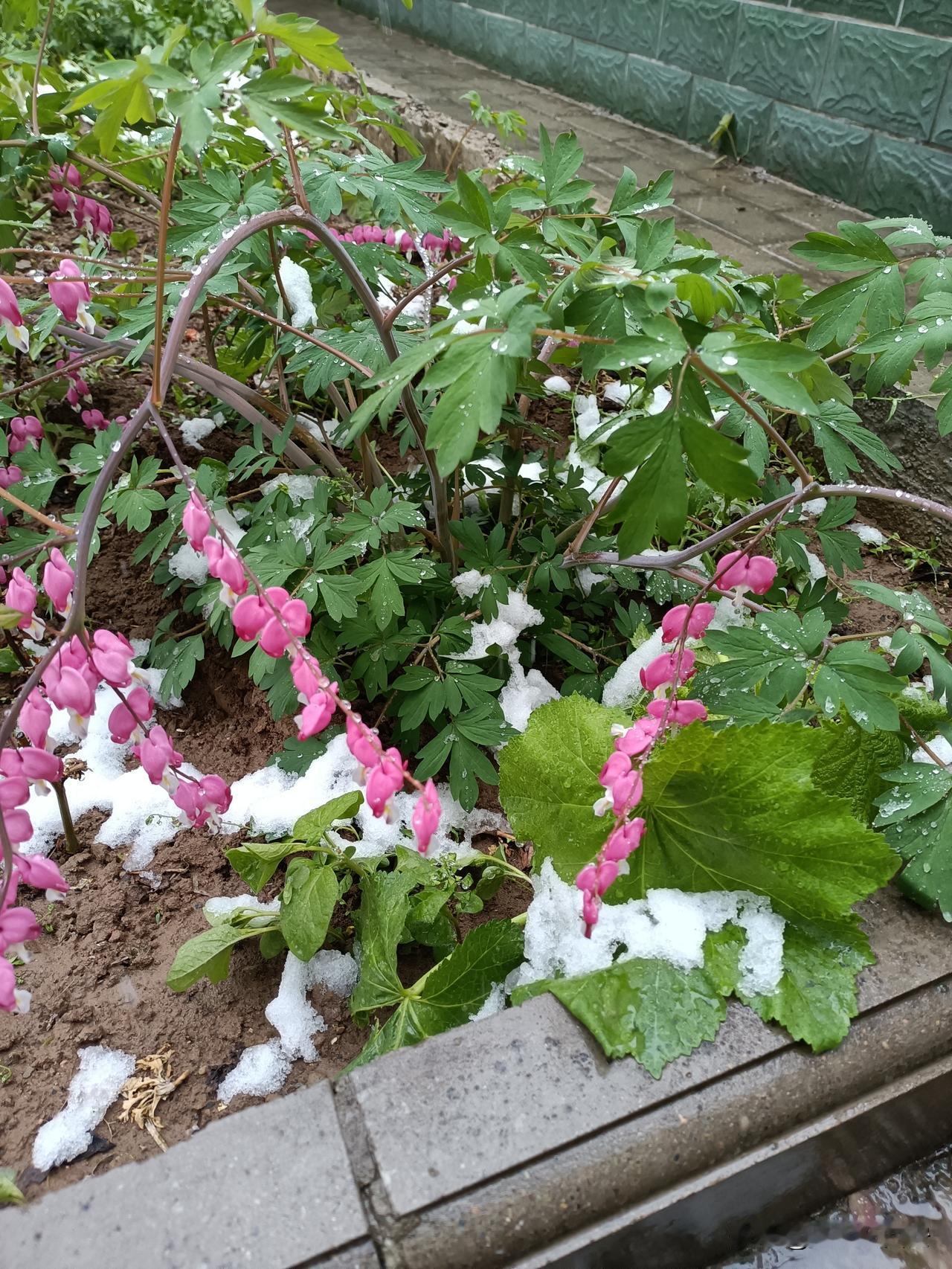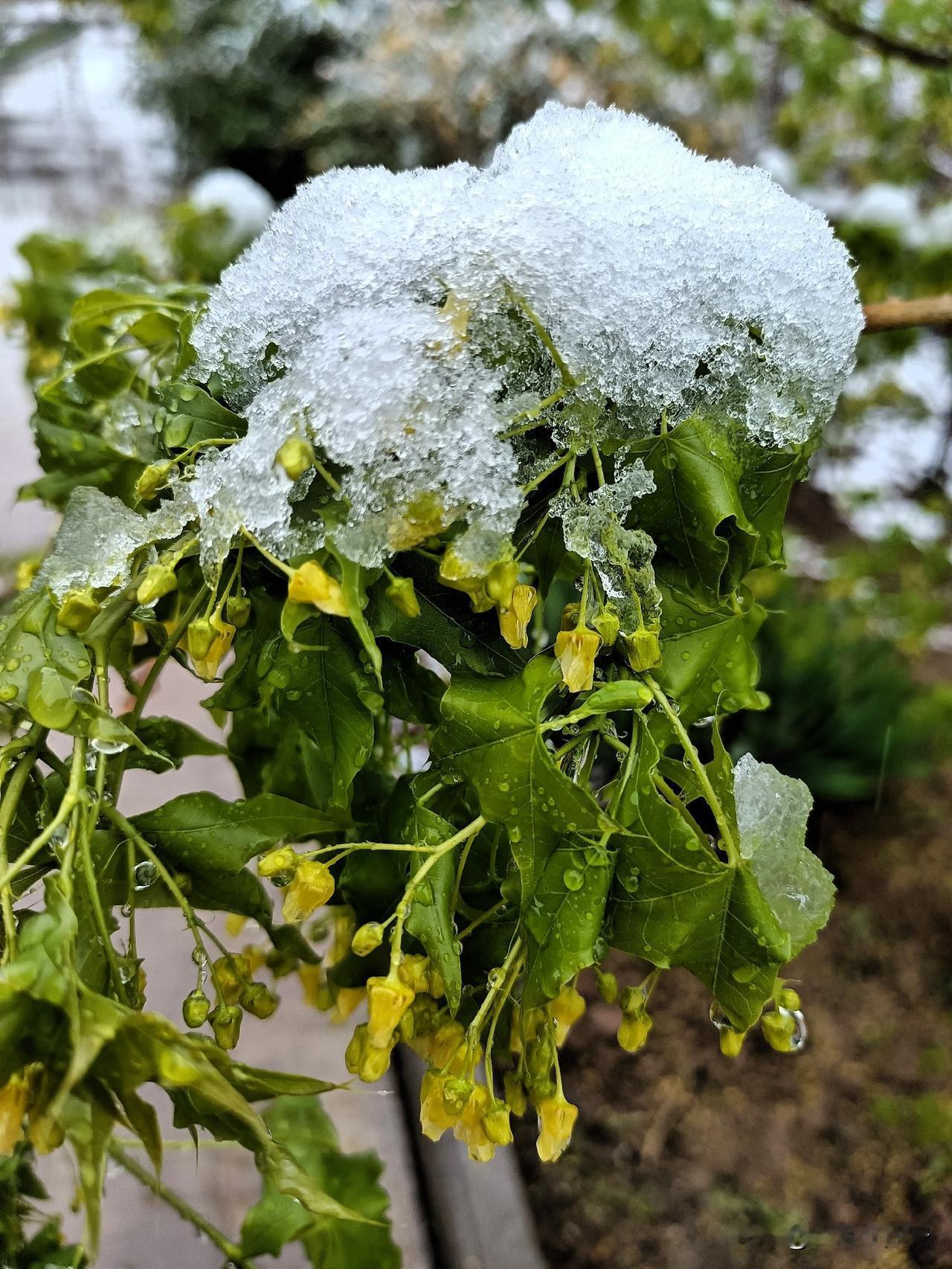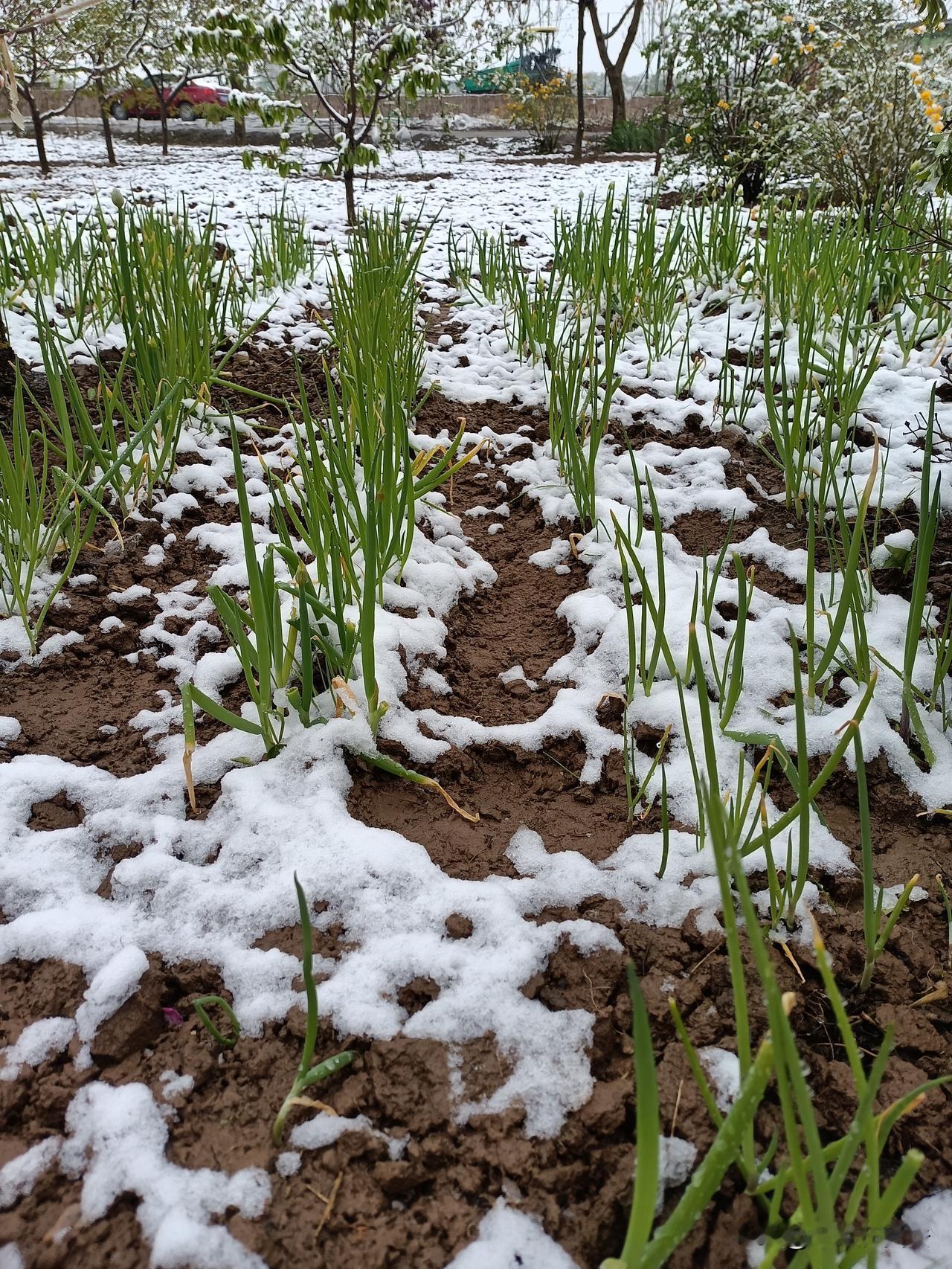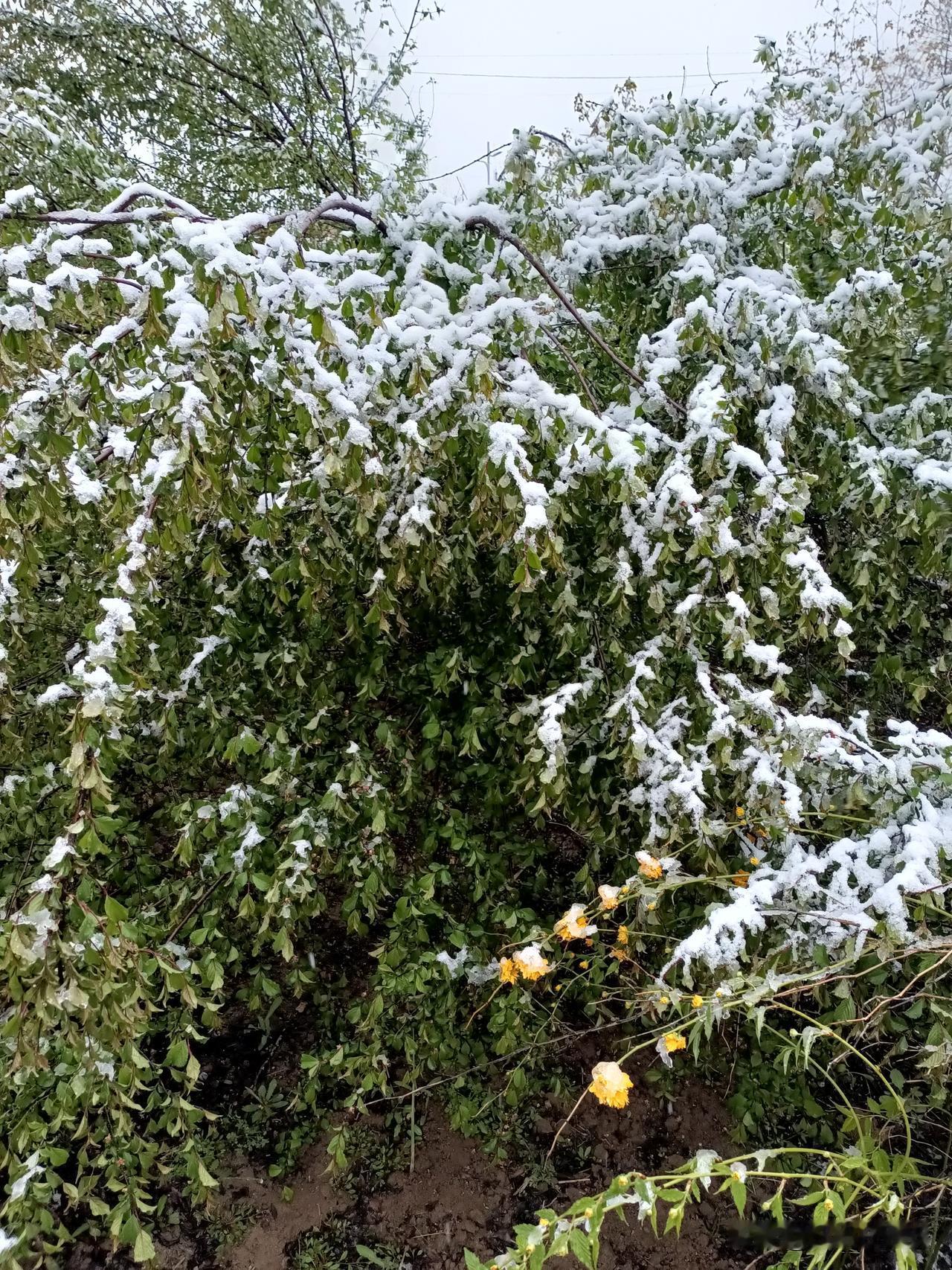 今天起床后,看见被大雪摧残的蔫里吧唧的鲜花和嫩草,心里不免担忧起来,最近忙前忙后,精心照料的高天,比如桃子,杏子、李子、樱桃、苹果等等开始座果的果树,会不会因为这场倒春寒而毁于一旦?