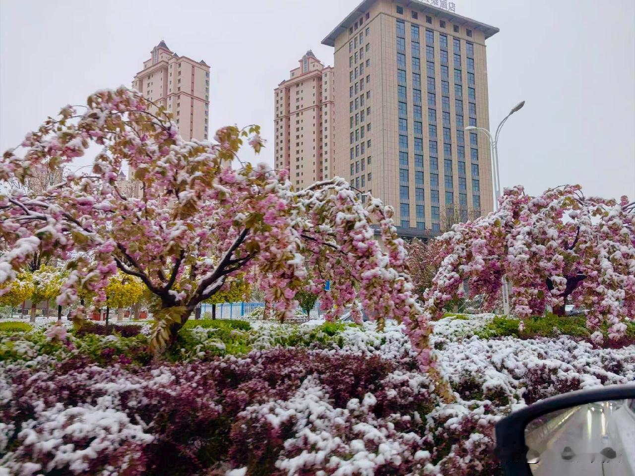 我就服了,这雪得和庆阳的油菜花,苹果花,核桃花,等等百花烂漫有多大的仇恨,这一路从深秋追到冬,最后又一路追杀到了四月。