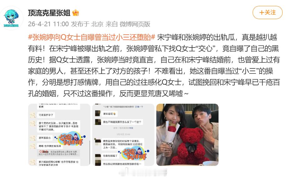 曝张婉婷曾找Q女士交心曝张婉婷曾当小三还怀孕有狗仔曝疑似张婉婷和Q女士的聊天记