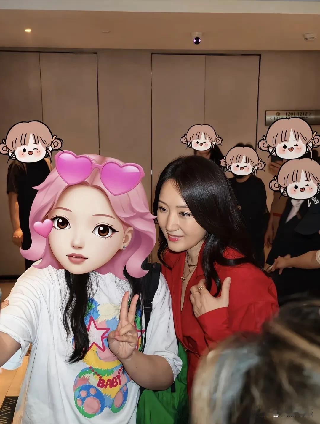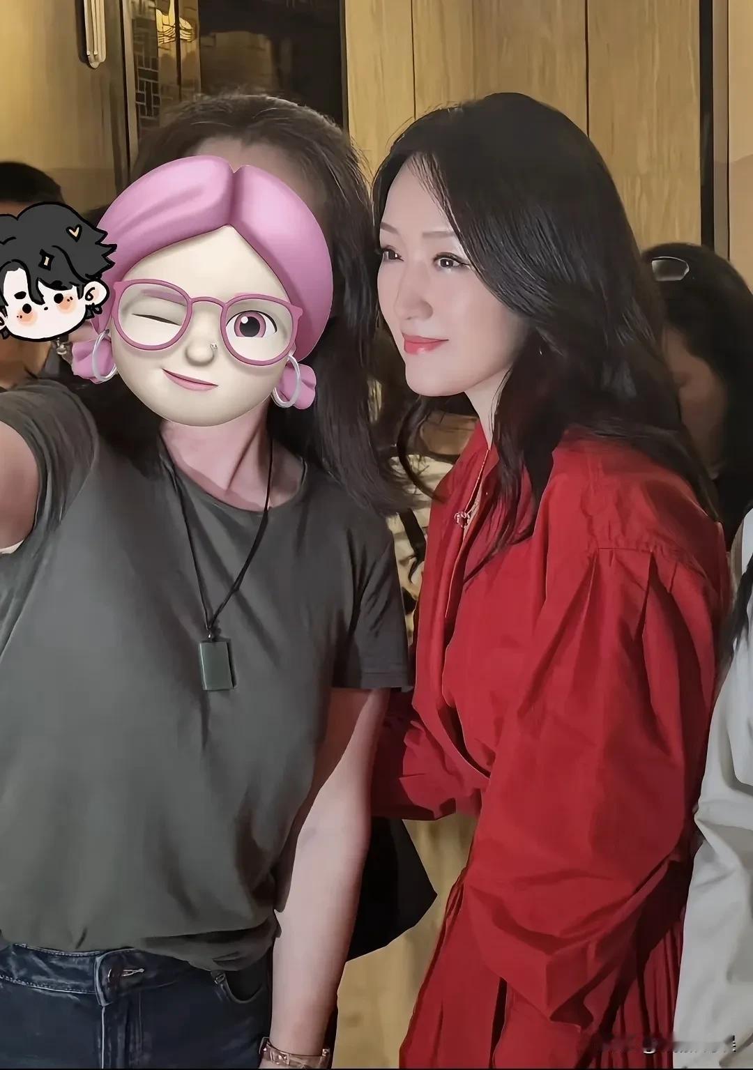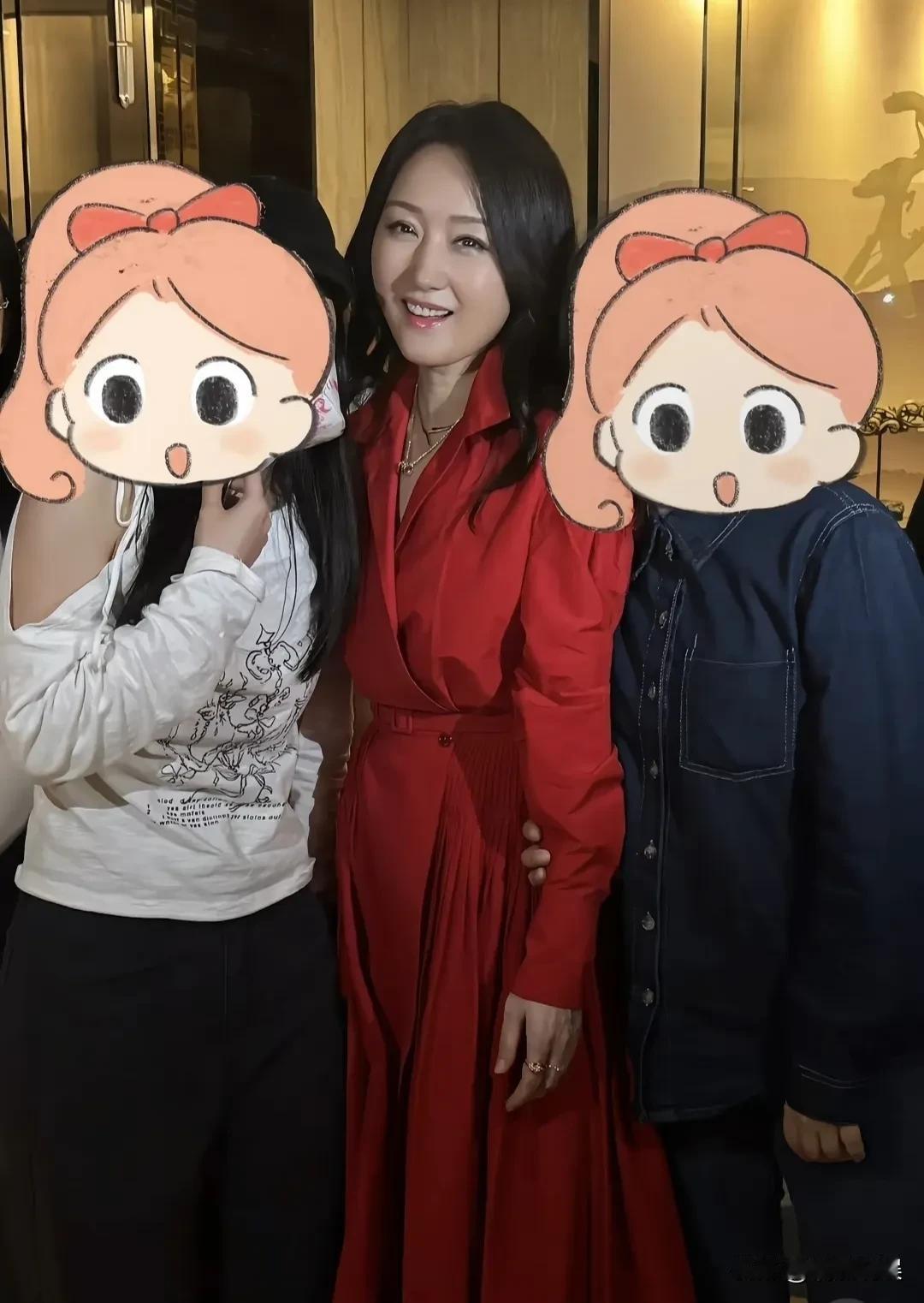 穿着一身大红色长裙的她,一头长发披肩,眉眼温柔,眉目含情,身形窈窕,五官和脸型和年轻时几乎没啥变化,54岁的人看起来像34岁,状态好年轻。