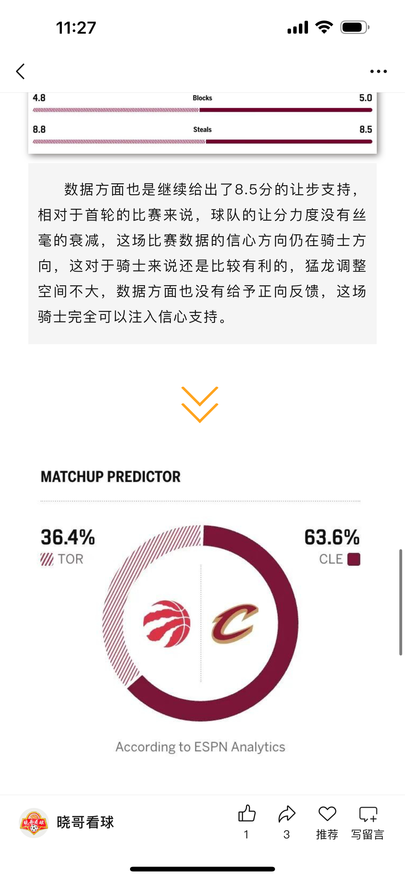 昨日篮球公推NBA季后赛骑士方向成功收获好评,这场比赛骑士三名核心爆发,米切尔、哈登、莫布里同时砍下20+的得分,猛龙这场明显加强对于内线的冲击,但是收效甚微,反观骑士以不变应万变,利用内线的优势将对手遏制,并且在进攻端米切尔和哈登没有被对手针对,这场依旧打的轻松写意,这场骑士拿下自然不难,本场好评合理。体彩篮球预测nba季后赛nba体育赛事猛龙vs骑士