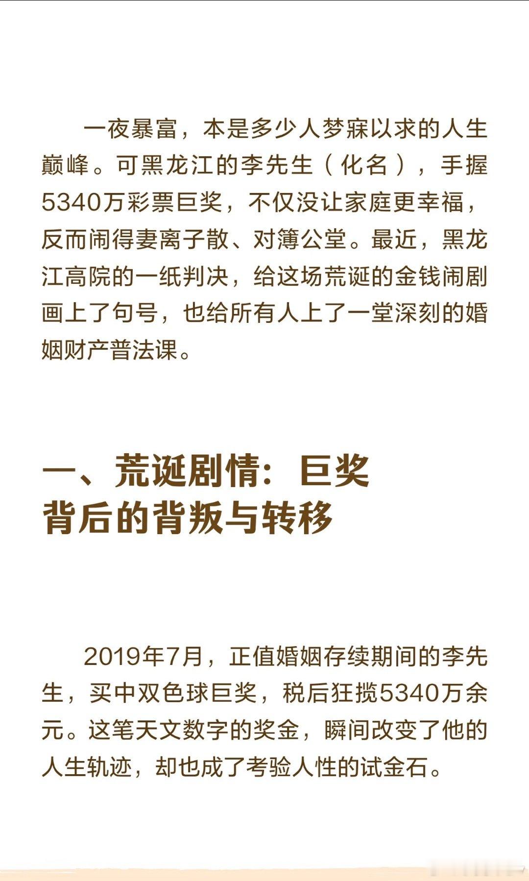 女子发现前夫婚内中大奖追回593万婚姻存续期间,一方取得的财产原则上均属夫妻共同