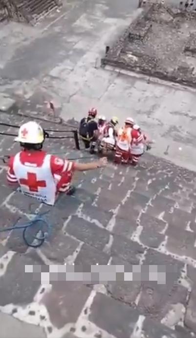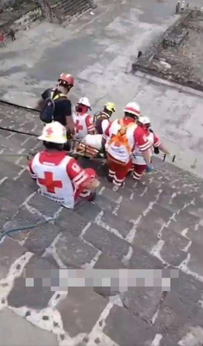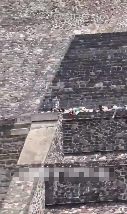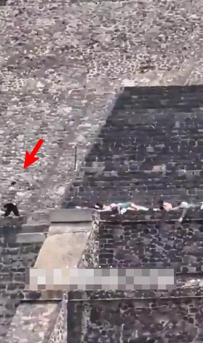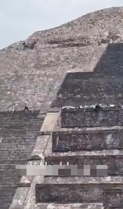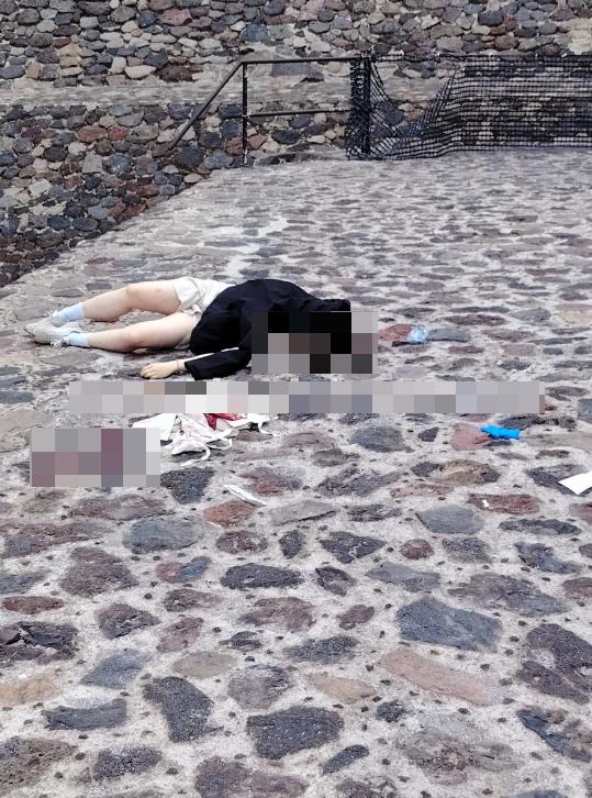 2026年4月20日发生在特奥蒂瓦坎“月亮金字塔”的枪击案。视频中可见袭击者持枪移动的身影,而游客们则惊恐地躲藏在金字塔的台阶上;随后展示的画面则是遇害的加拿大游客以及已身亡的枪手。