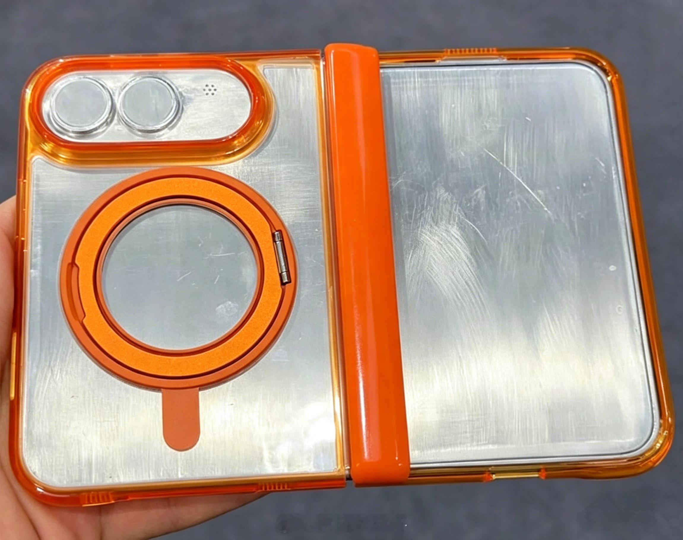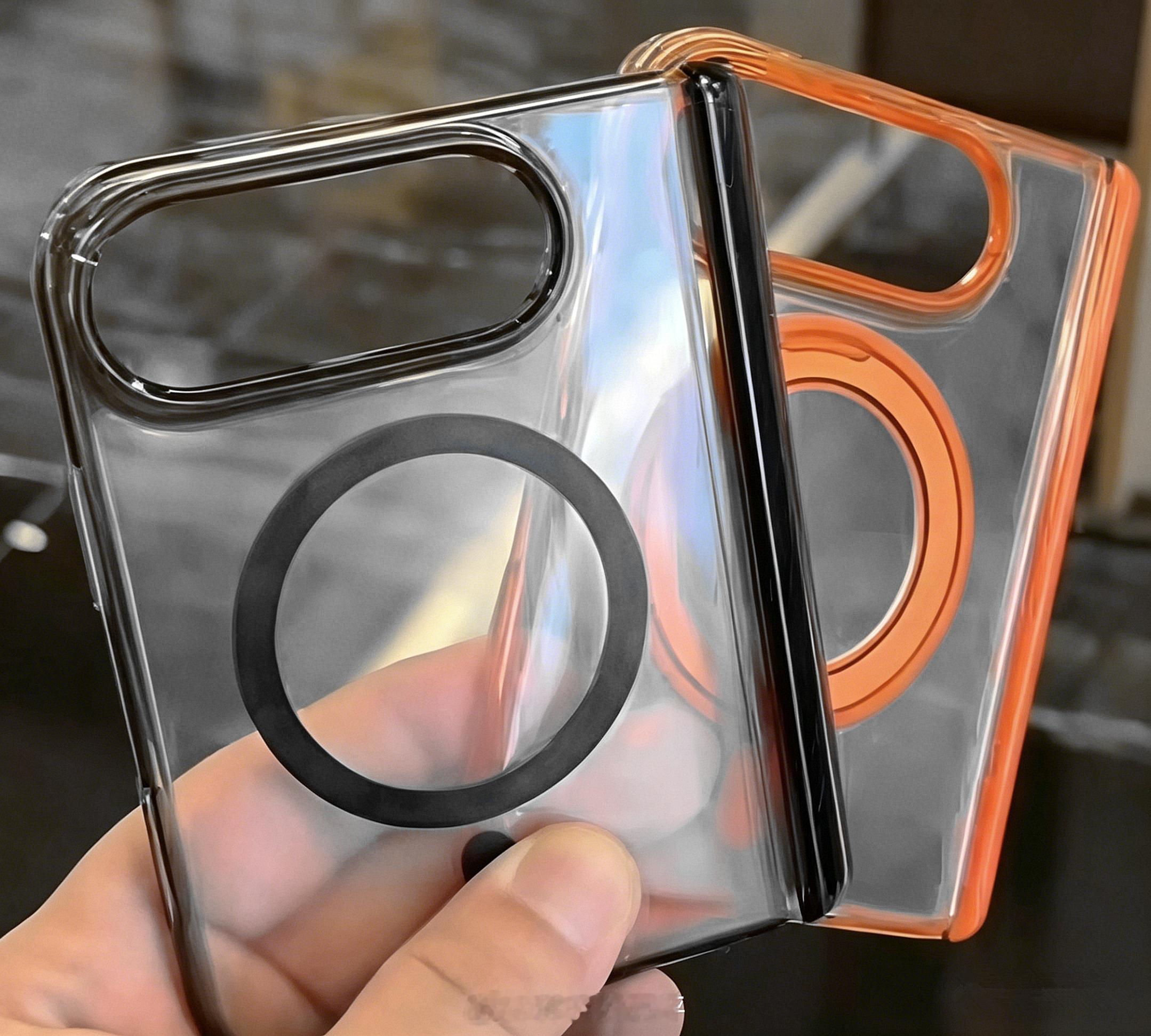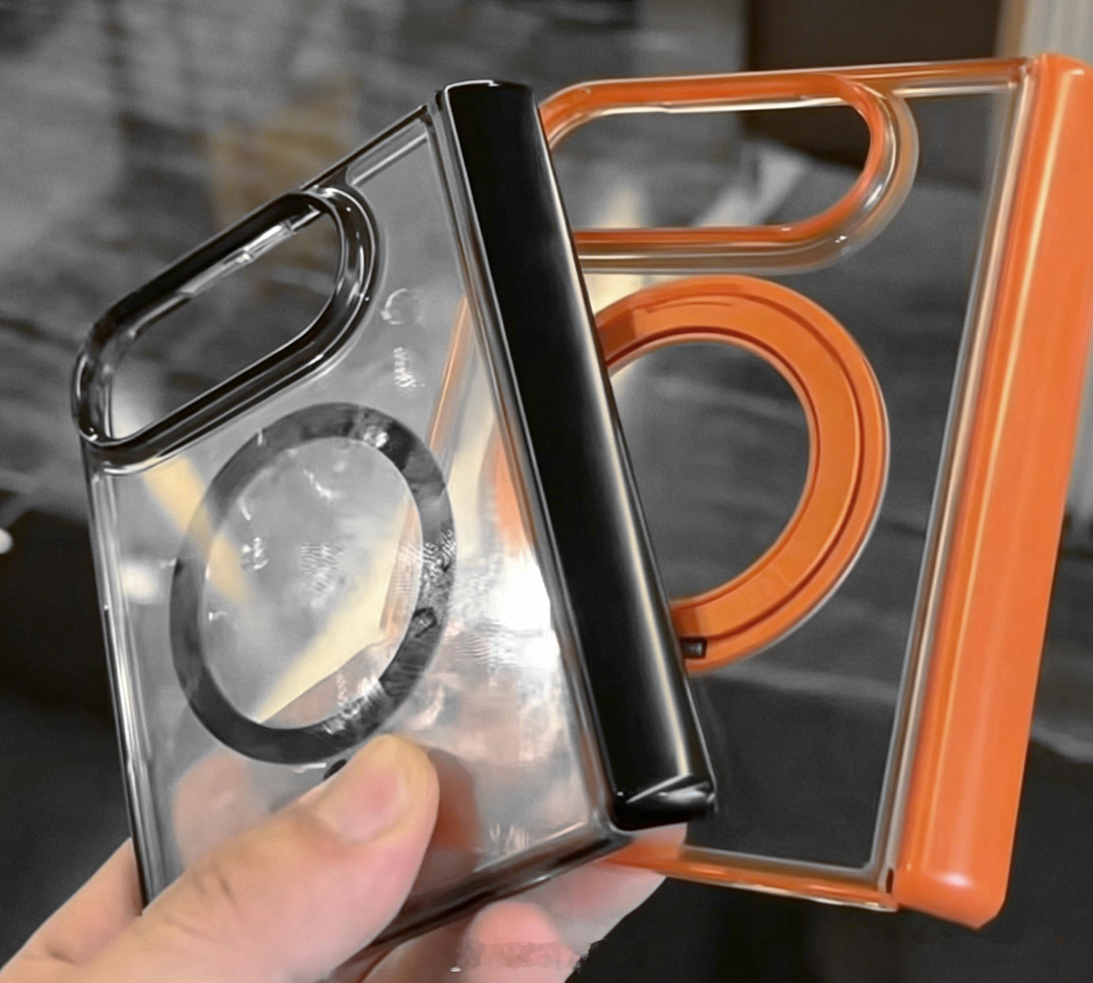 折叠iPhone手机壳曝光 继续根据图纸还原的多组机模之后,近日又有网友曝光了疑似苹果首款折叠屏手机iPhone Fold(iPhone Ultra)的手机壳照片。从图片细节不难发现,新机或支持MagSafe生态,这意味着苹果可能已解决机身厚度与磁吸组件的兼容难题,同时也暗示其折叠屏硬件定位或与旗舰级相当。还是基于那套方案出来的玩意,没什么新东西。我一度怀疑是不是有人先YY了图,然后有人按照这图还原了实体机模,然后又有人再根据机模做了手机壳......(图源网络)