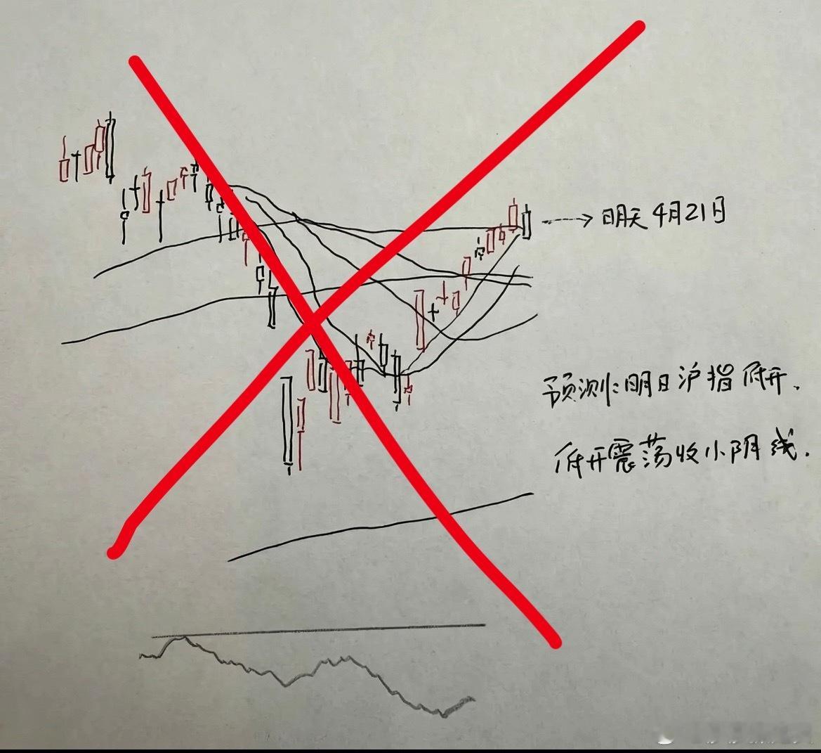 最后大家看一下图二莎哥昨天更新的,关于今天走势的手绘预测图:
