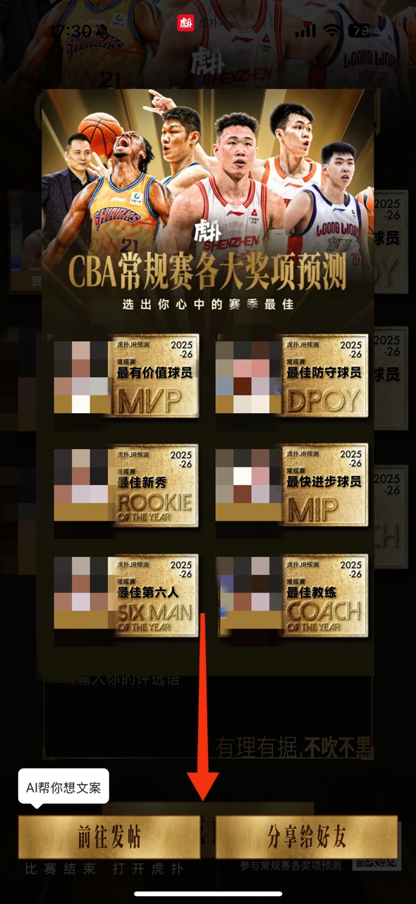现在快来虎扑CBA常规赛各大奖项预测活动,选出你心中的最佳候选人。