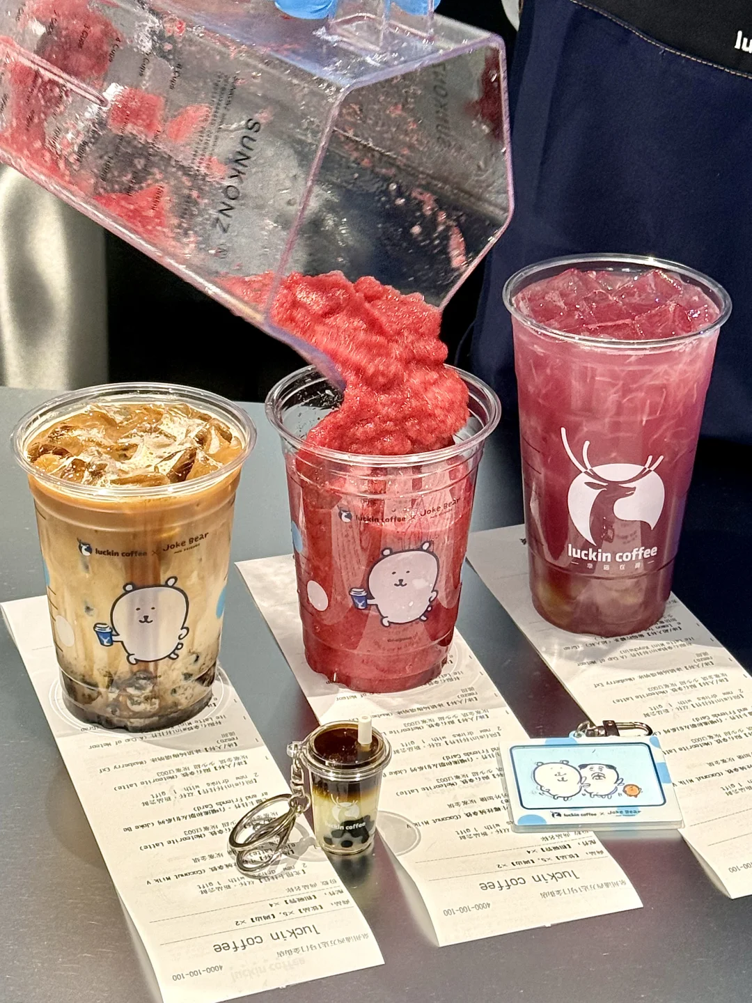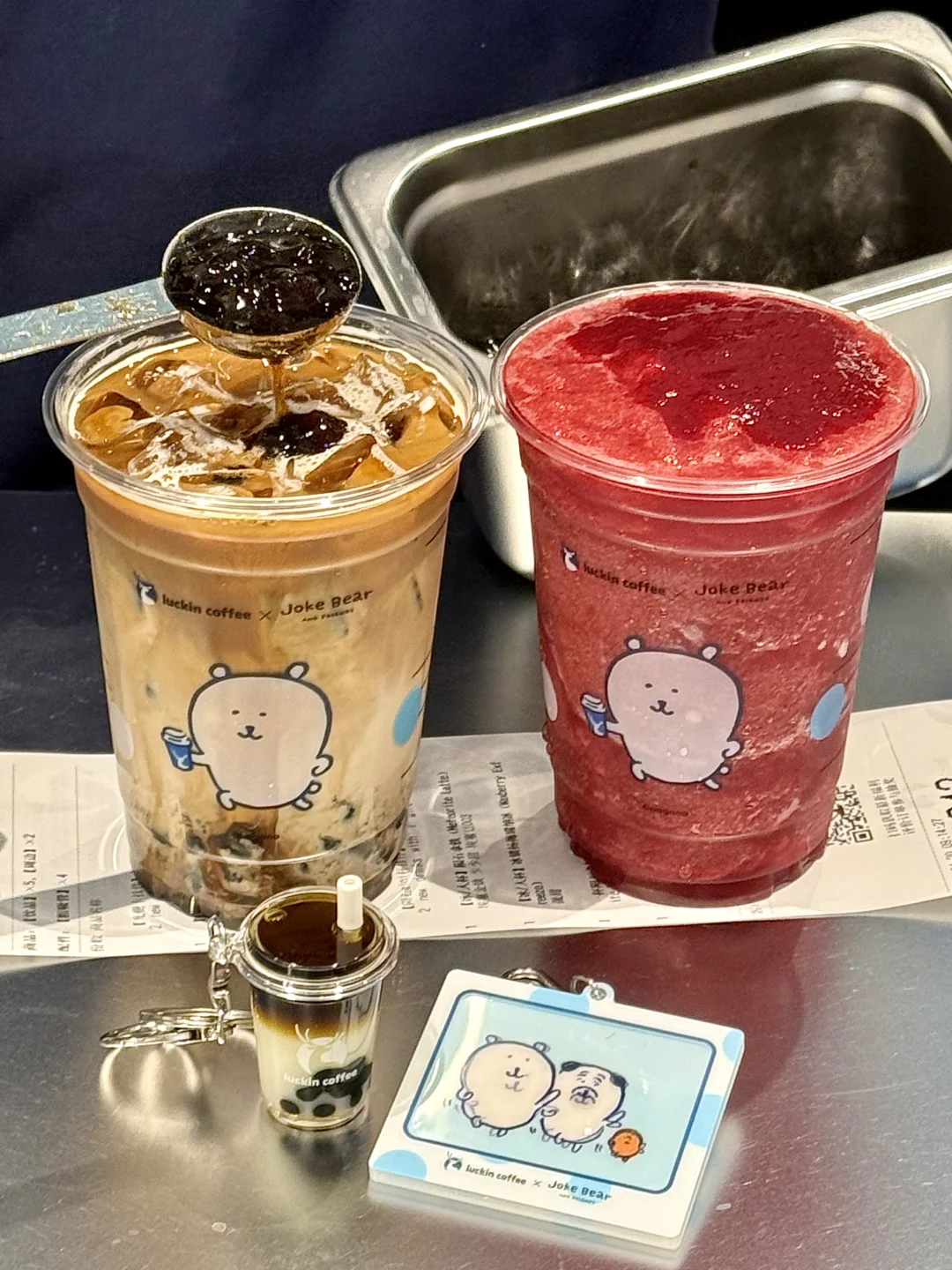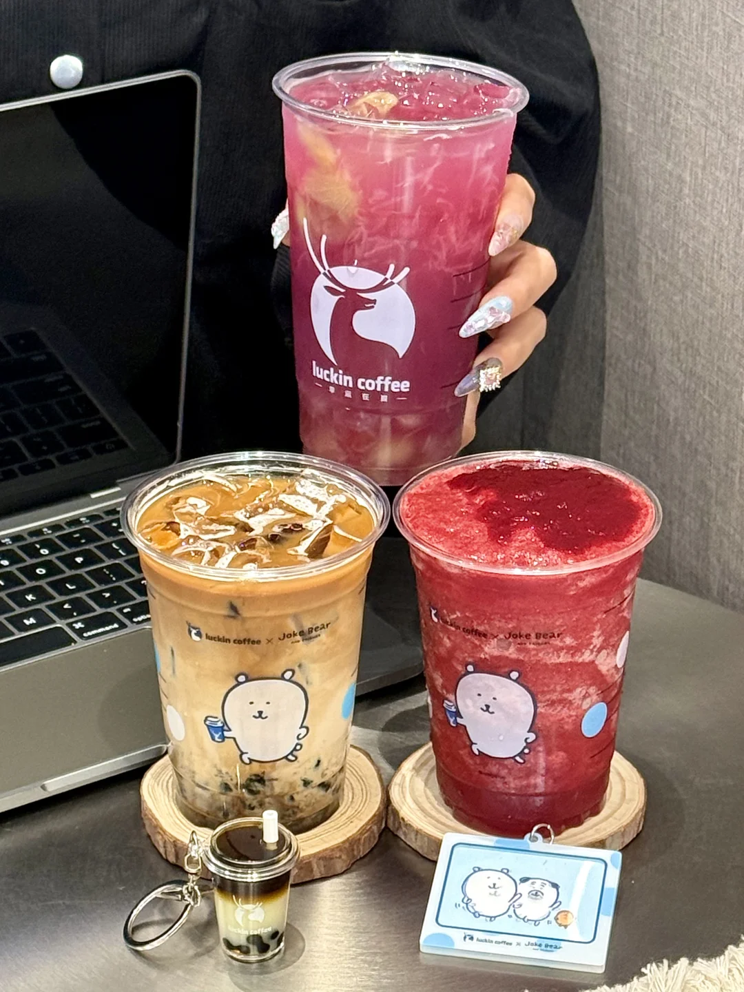 还有自嘲熊光栅卡挂件和陨石mini杯挂件!太可爱惹好稀罕!!!立马挂上包了✌️