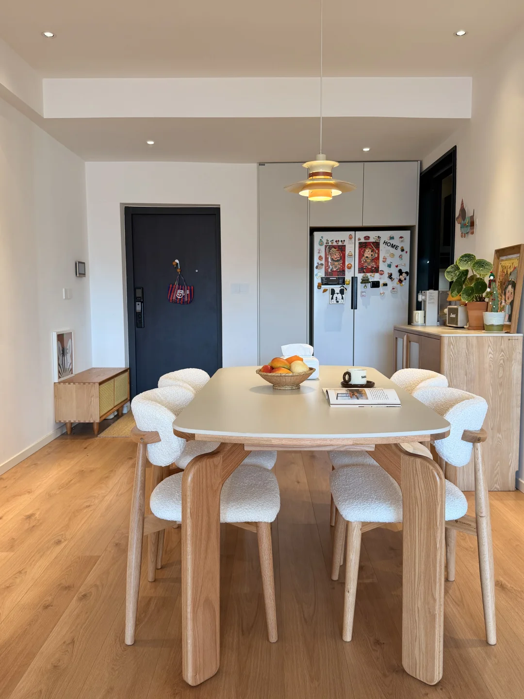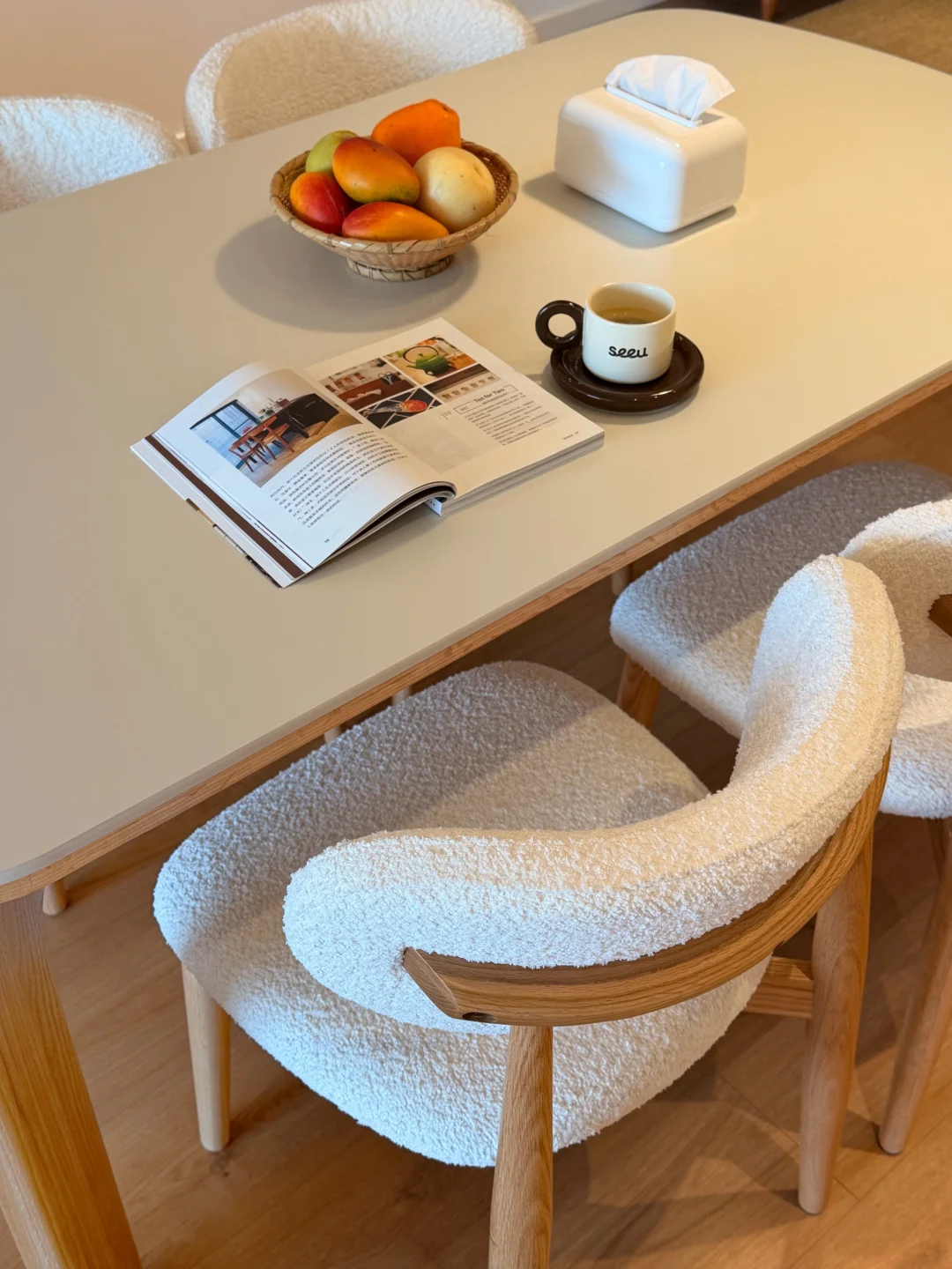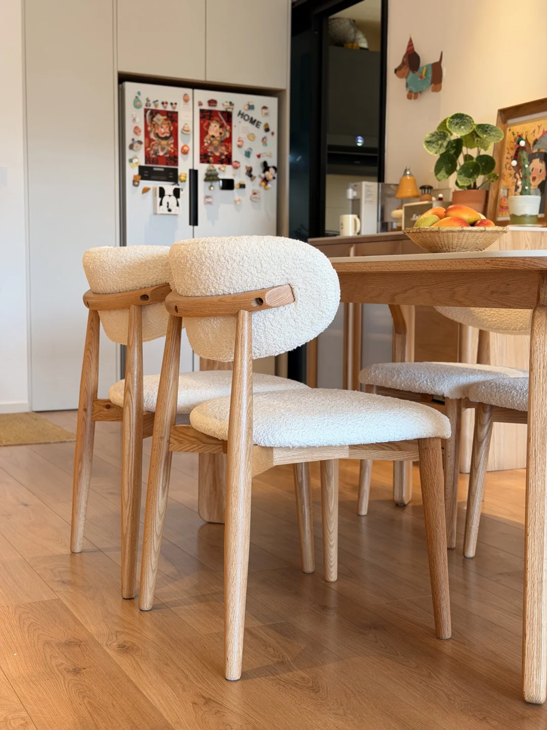 仿羊羔绒的面料,毛茸茸软乎乎,往餐厅一放,满是居家的温馨感~