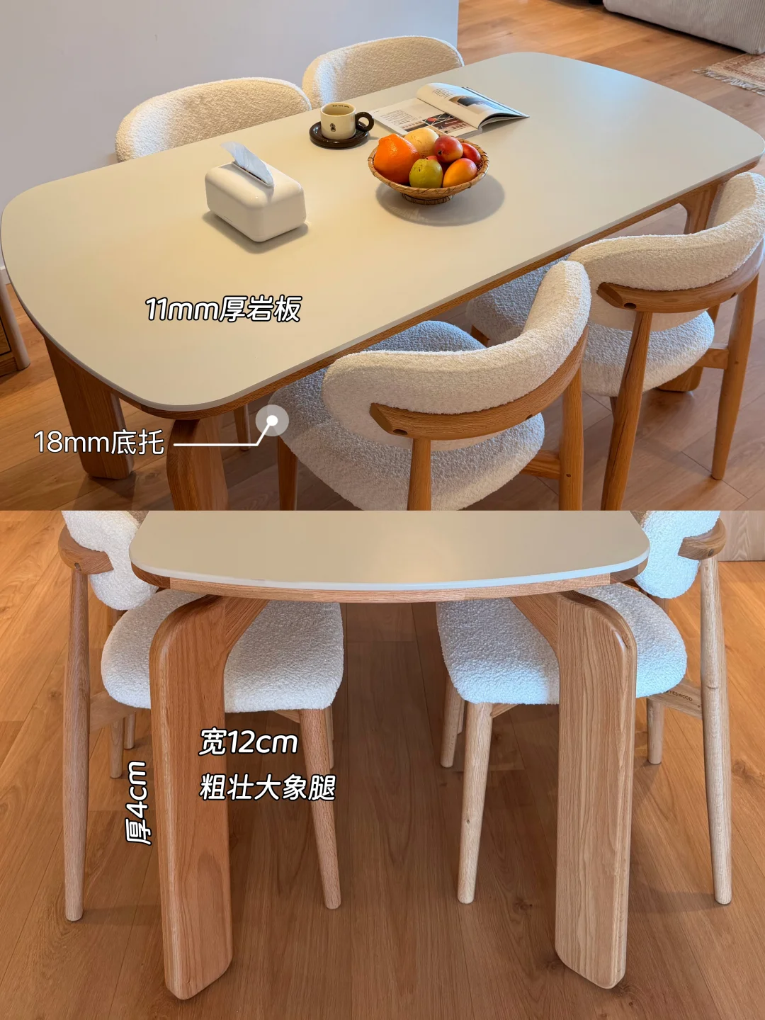 宽12cm厚4cm的桌腿圆润粗壮,日常使用稳稳当当!