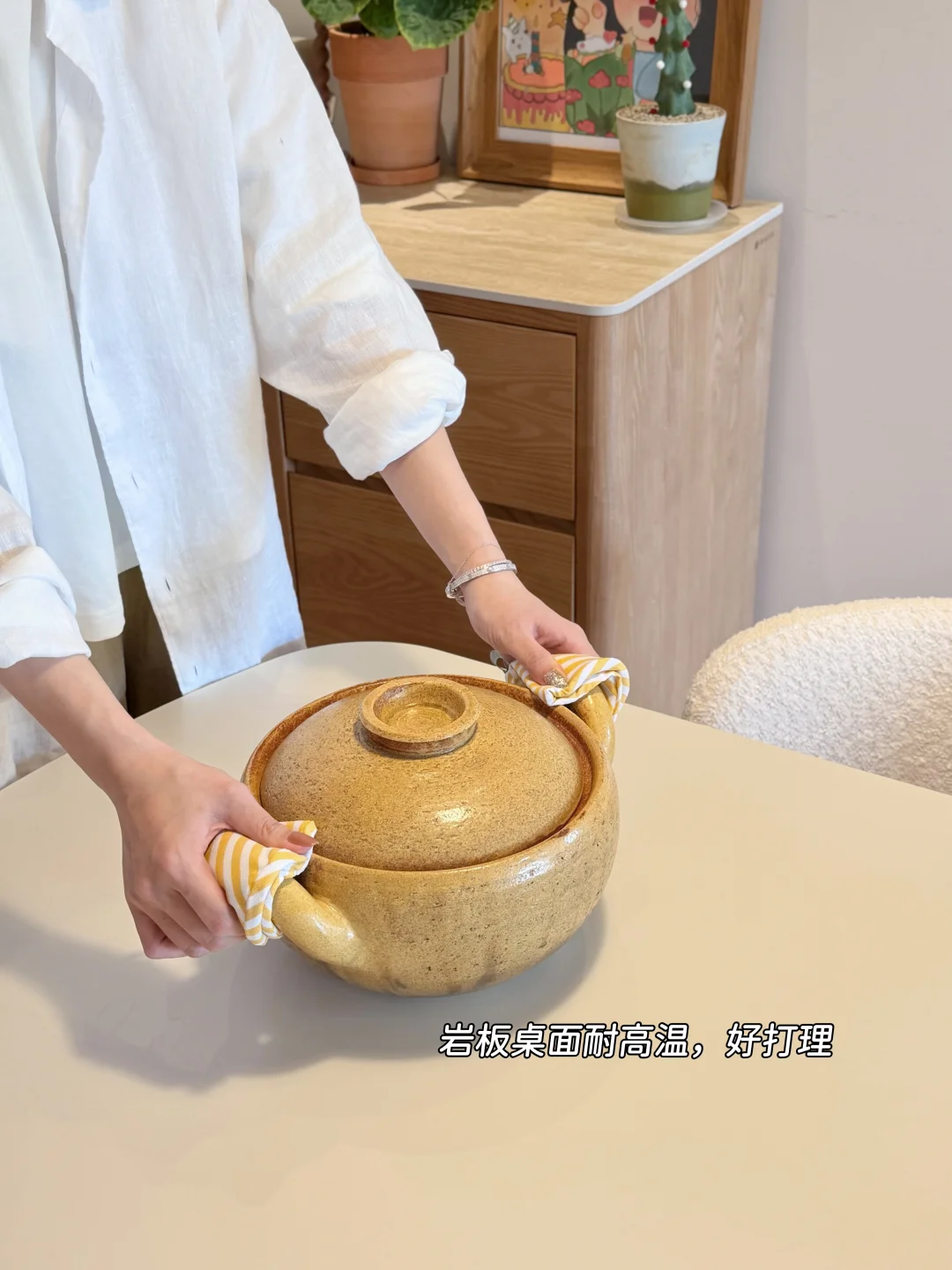实木的厚重和岩板的清爽搭在一起,意外和谐~