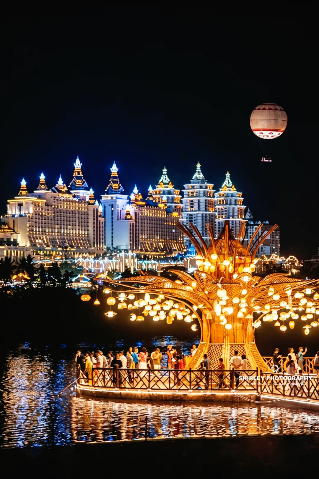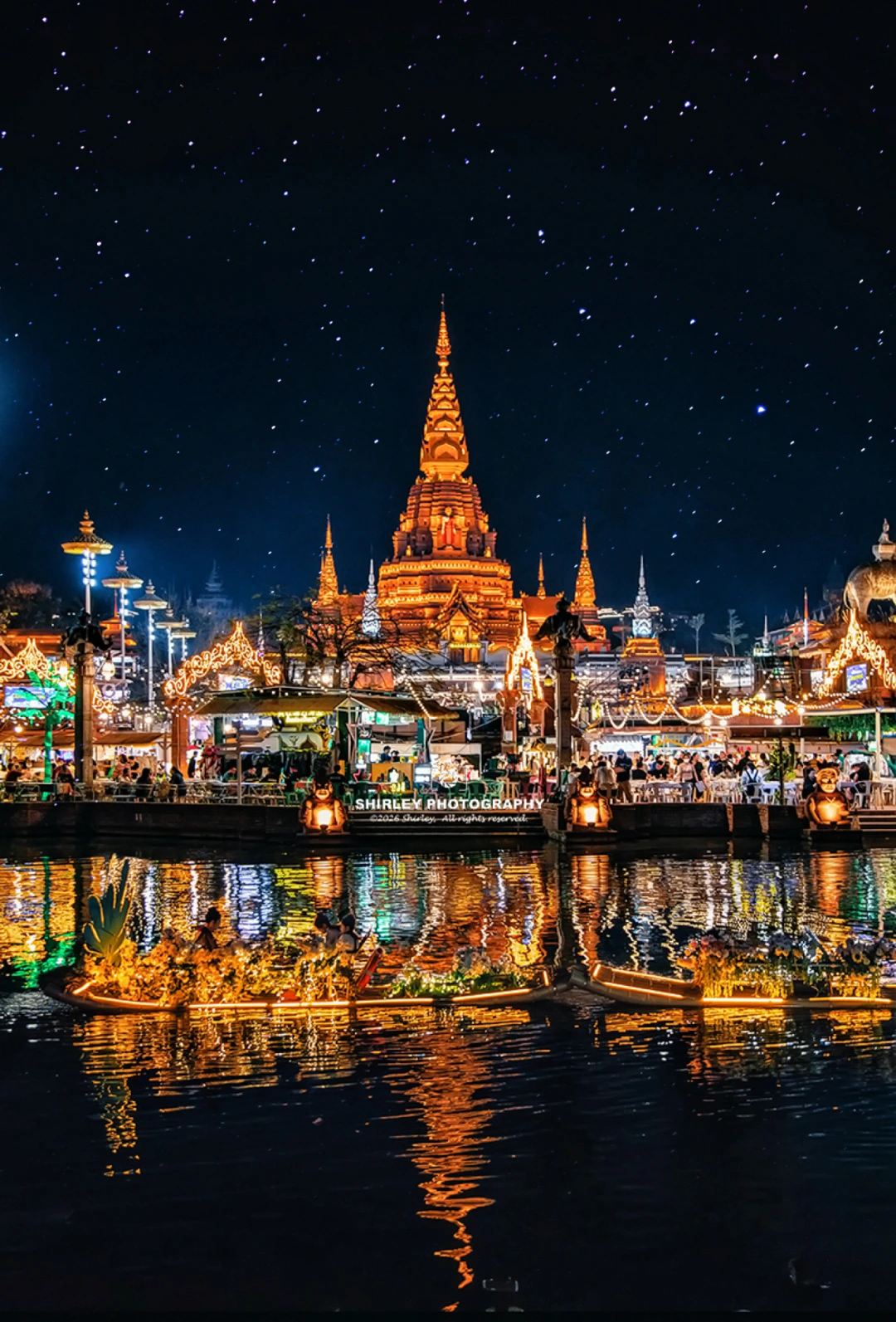 隔着河流拍摄对岸的大金塔,灯火璀璨,也是夜市经典一景