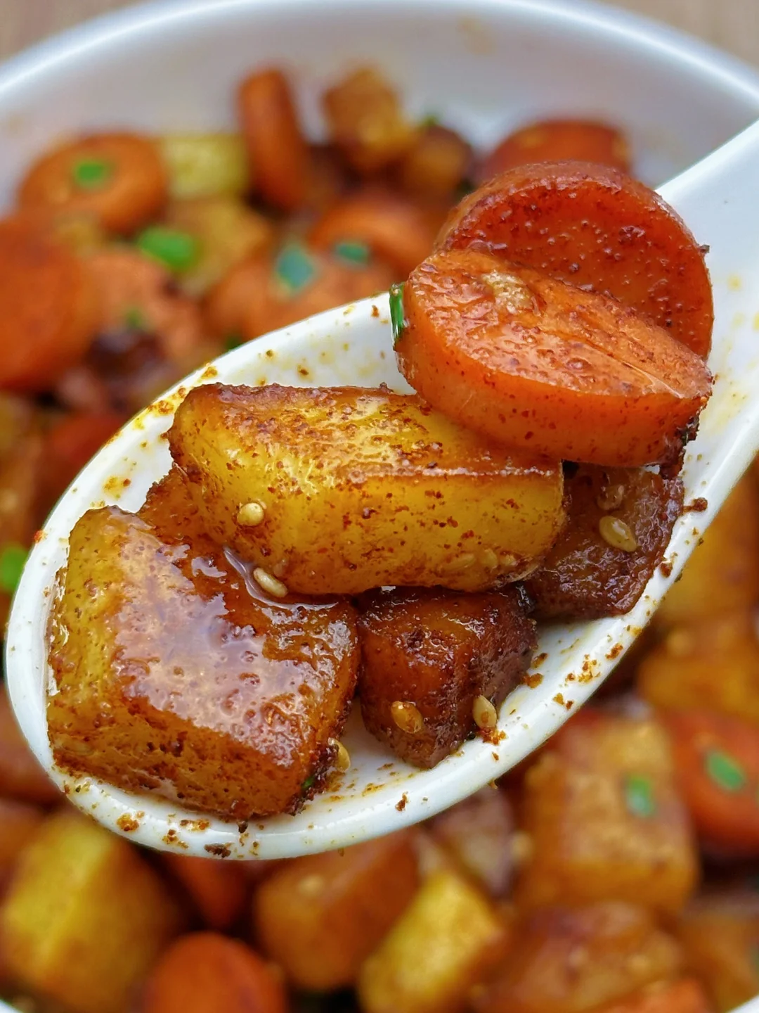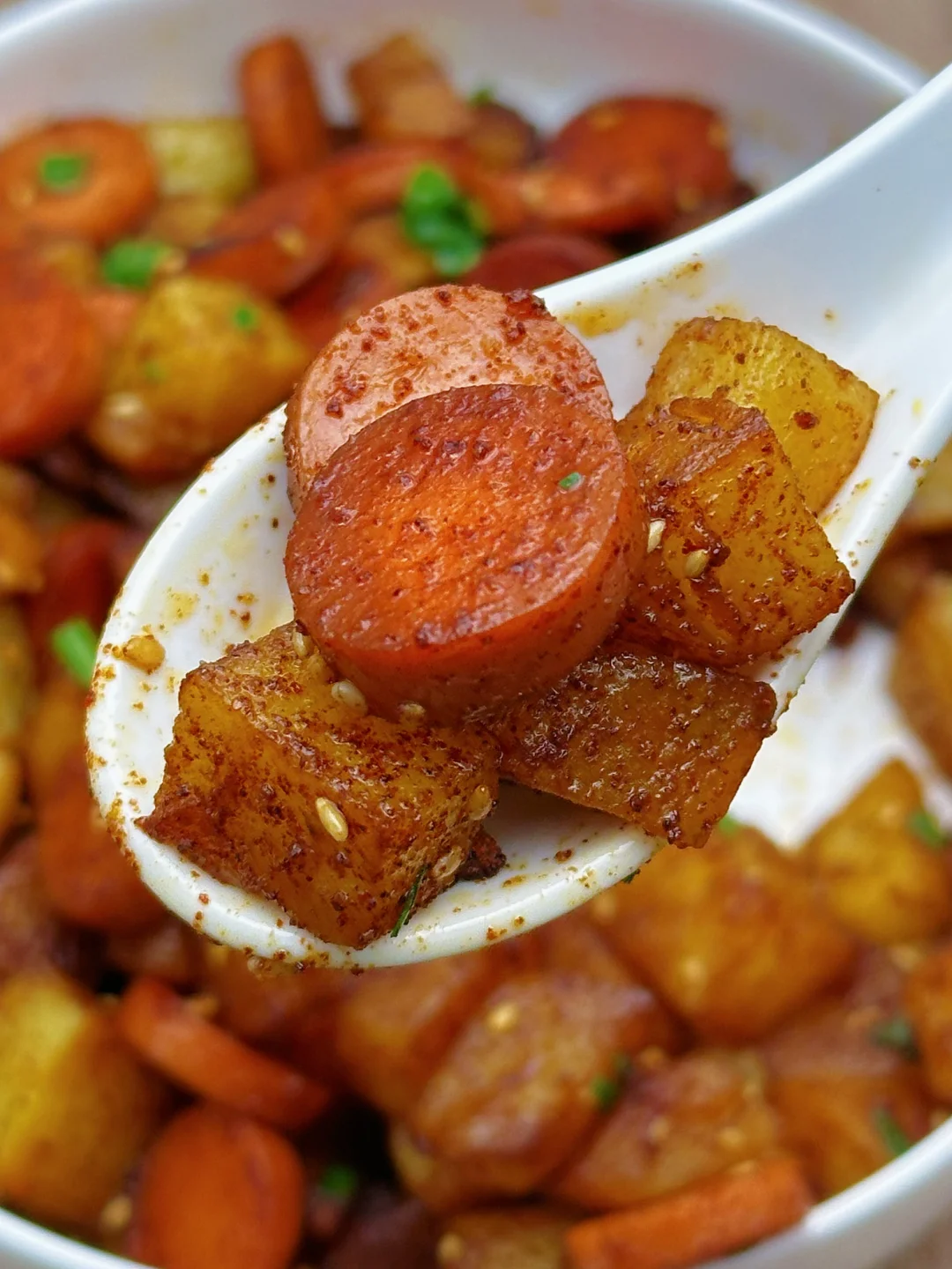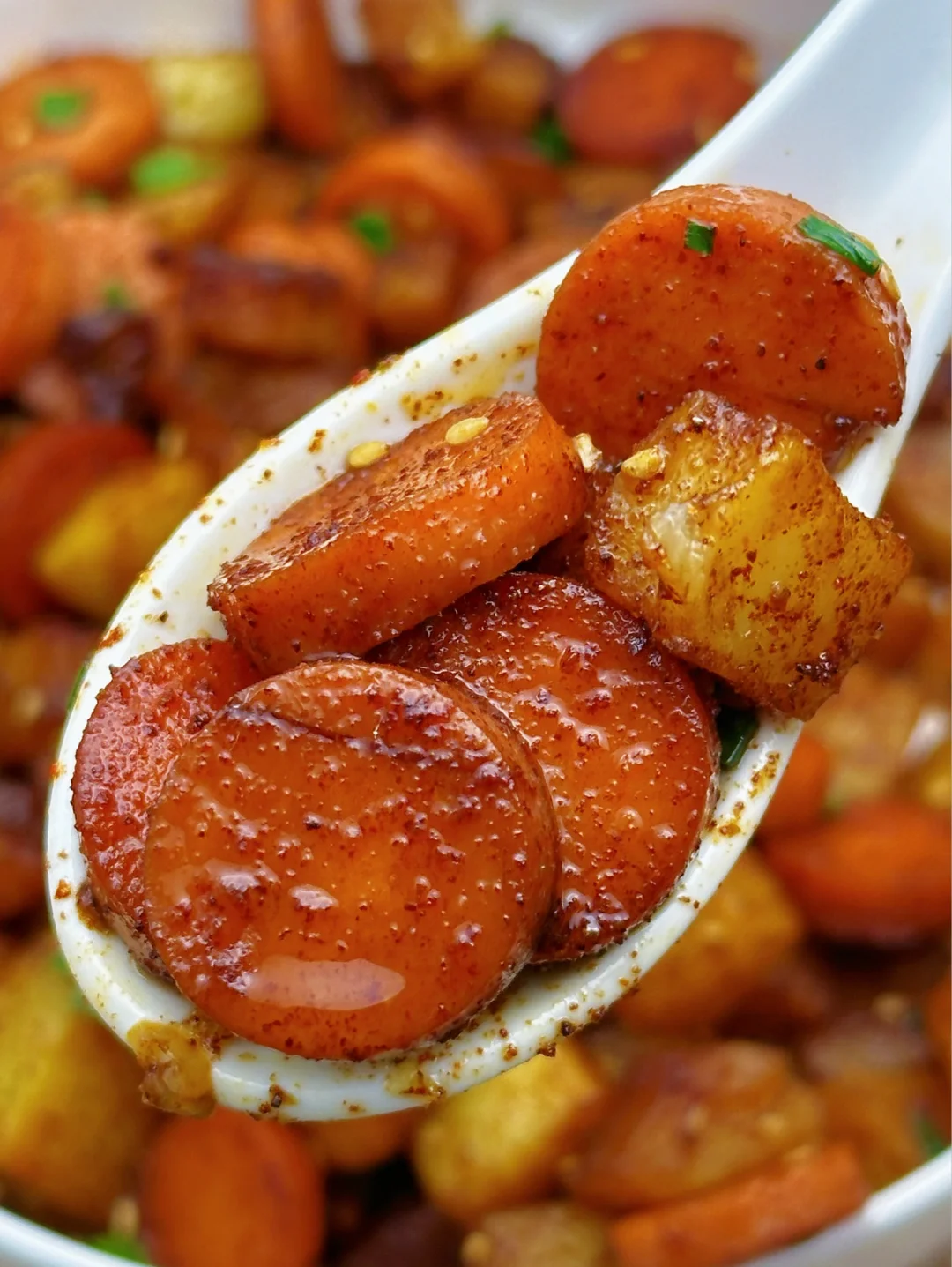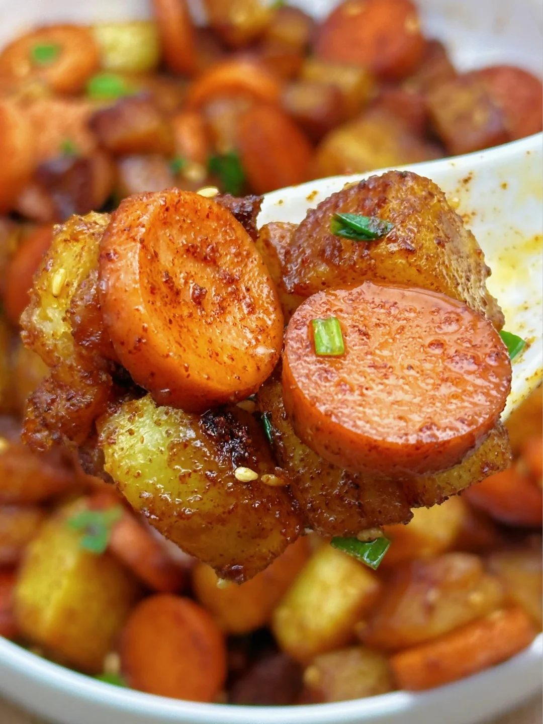 姐妹们,这个孜然火腿土豆丁一上桌就炫到我了,巨好吃!外层酥脆,内里软糯,孜然味浓郁,每一口下去都焦香软糯,香辣过瘾,咸香微辣,一上桌就光盘!而且做法简单,家人们赶紧来试试吧~