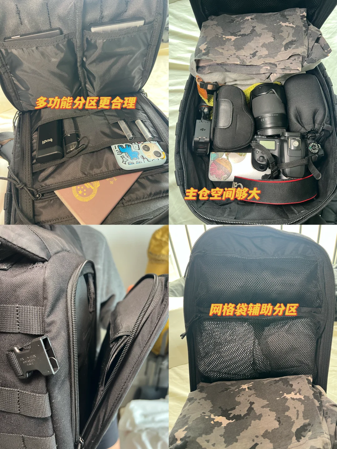首先它空间足够大,平时出门轻户外运动,电脑、相机、充电宝这些日常设备都能装进去,分区做得挺清楚,拿东西不用翻半天。上面的快取口袋我基本固定放手机和耳机,这种小细节,在每天用的时候特别明显。