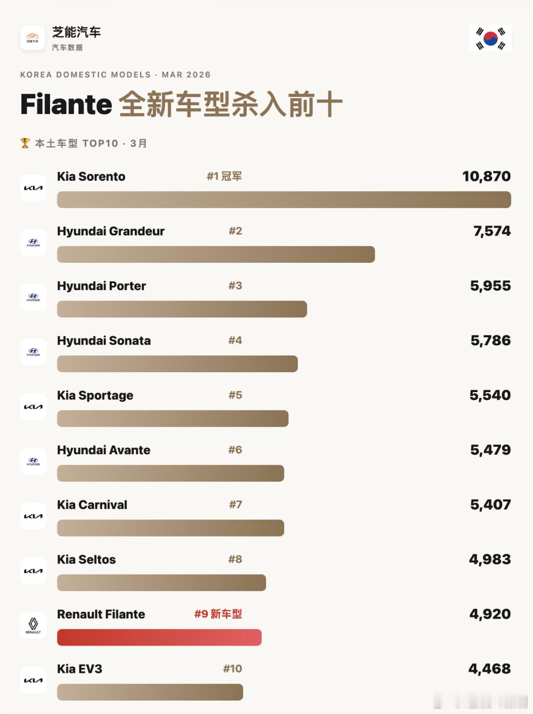 亚洲车市 | 韩国2026年3月:比亚迪销量1664台2026年3月,韩国乘用车