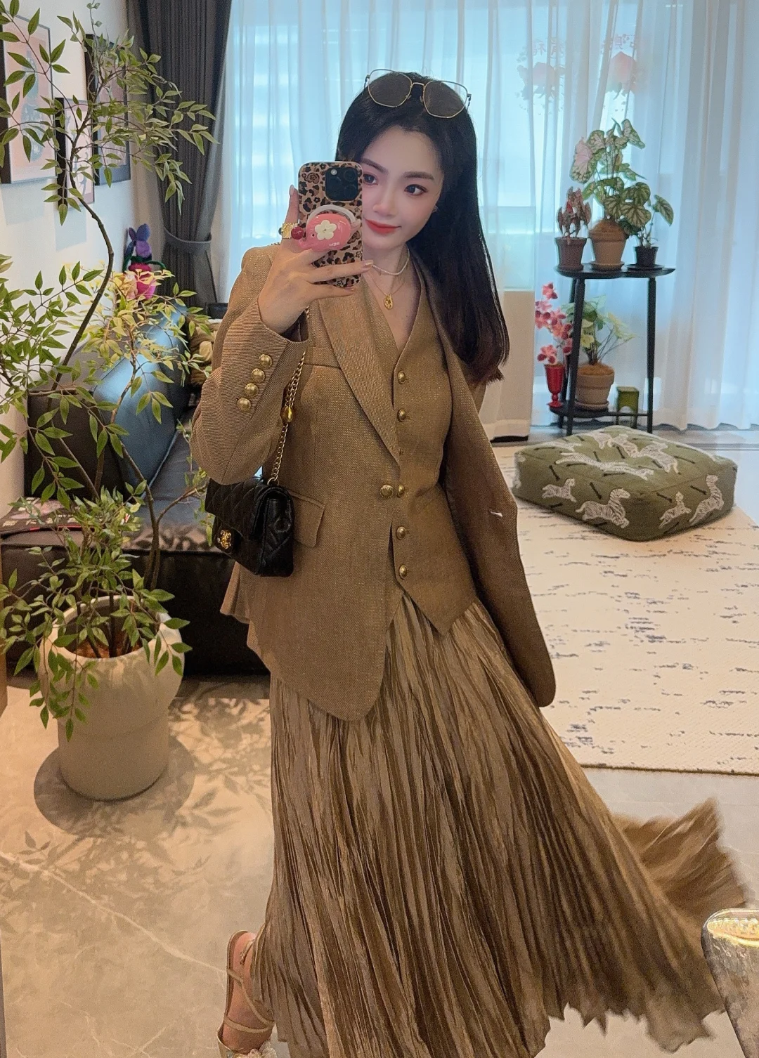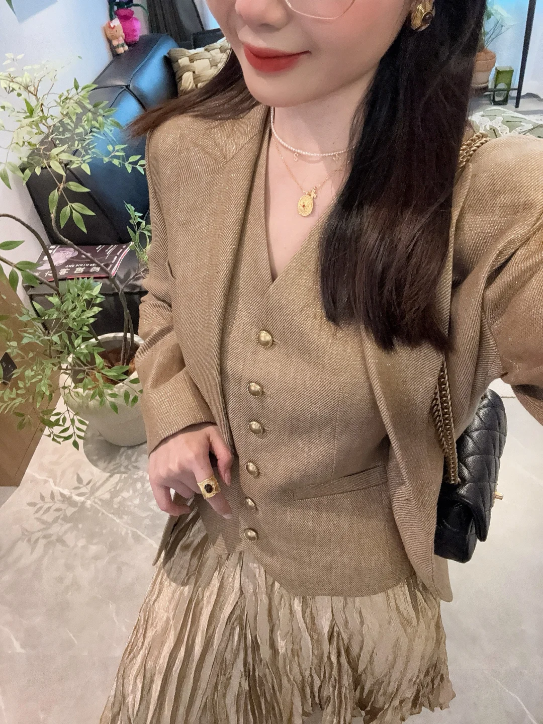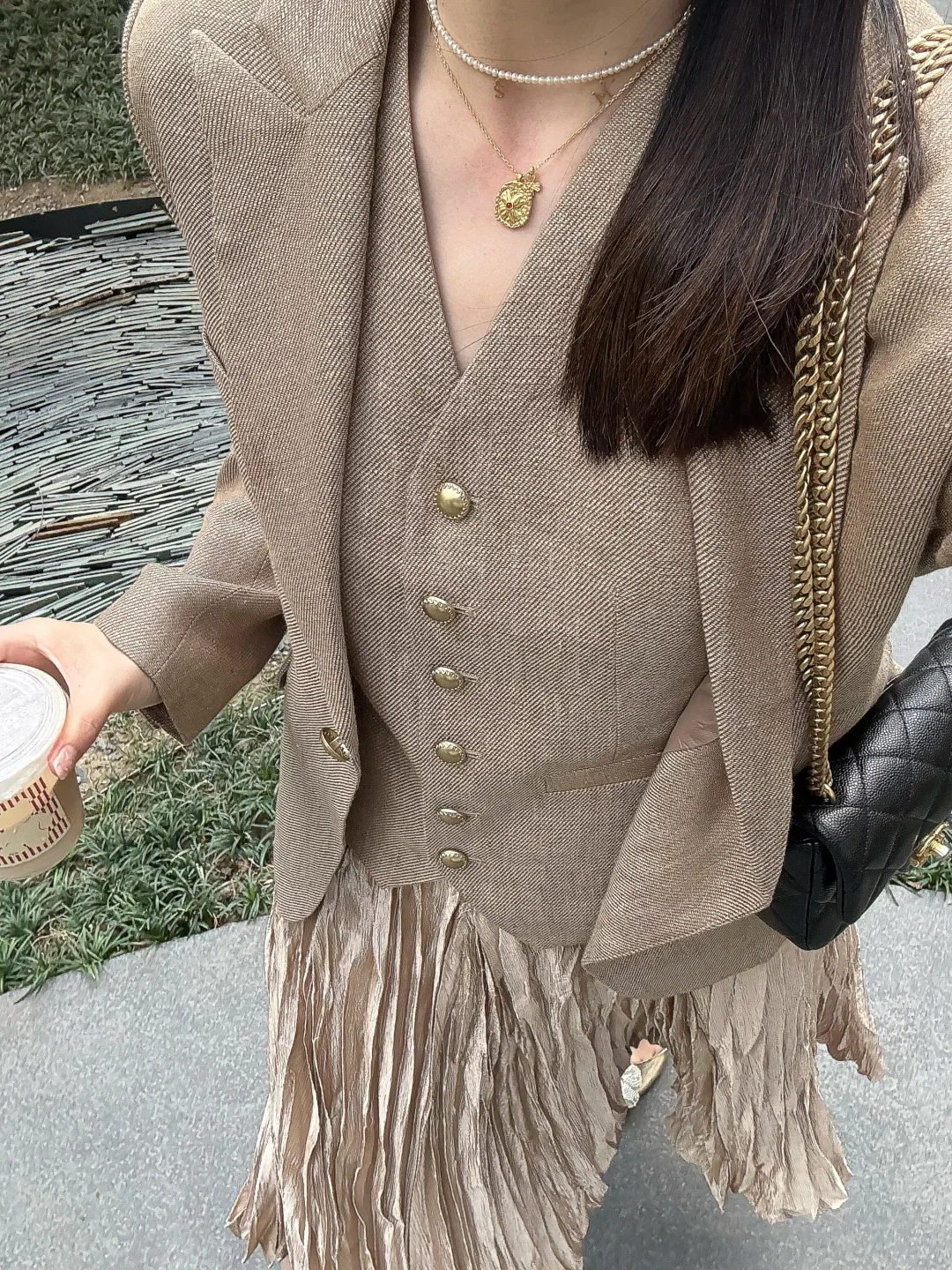 小香风西装阳光下自带细闪,低调又显贵~同色系马甲单穿也好看,叠穿层次感直接拉满!
