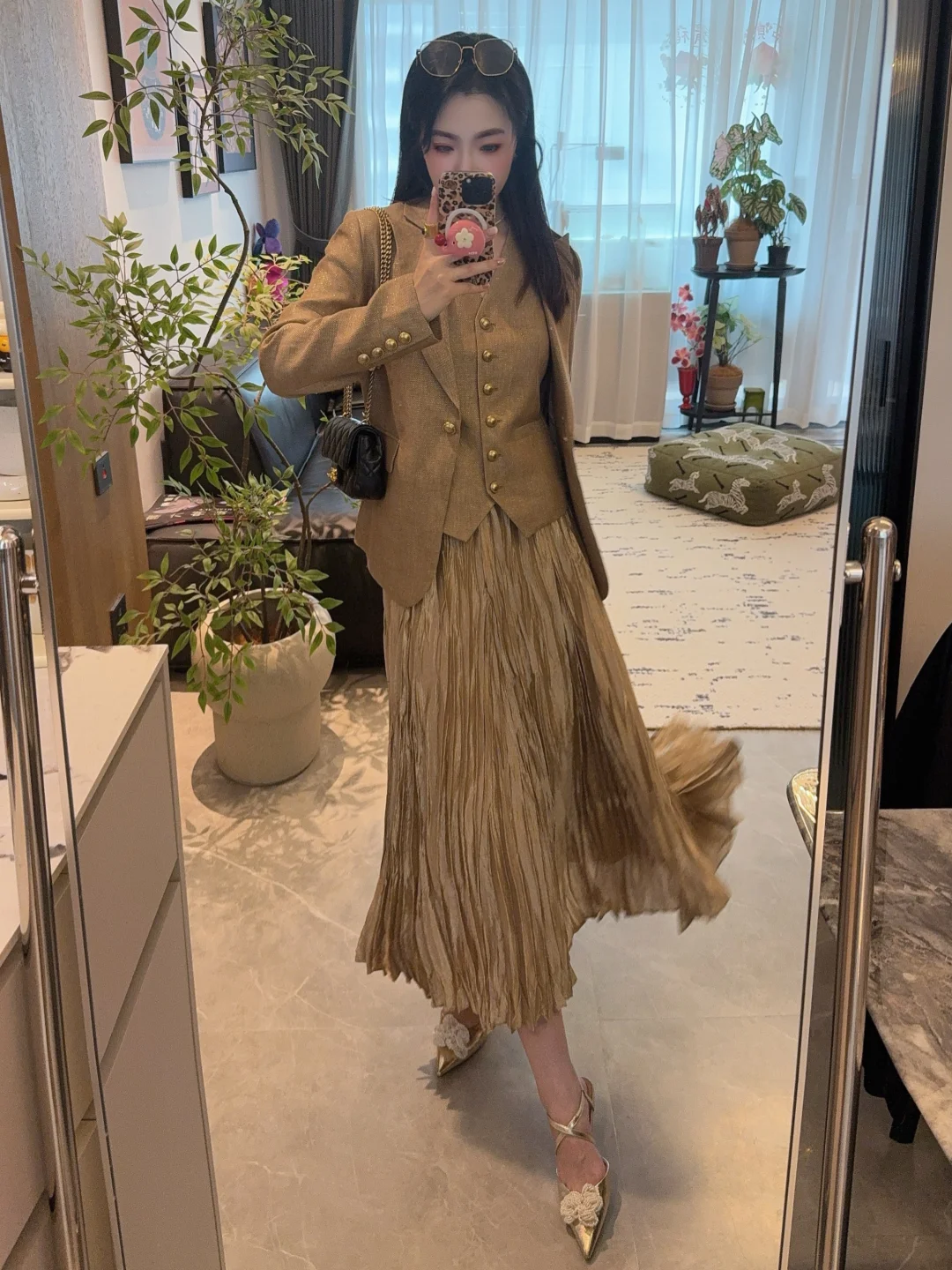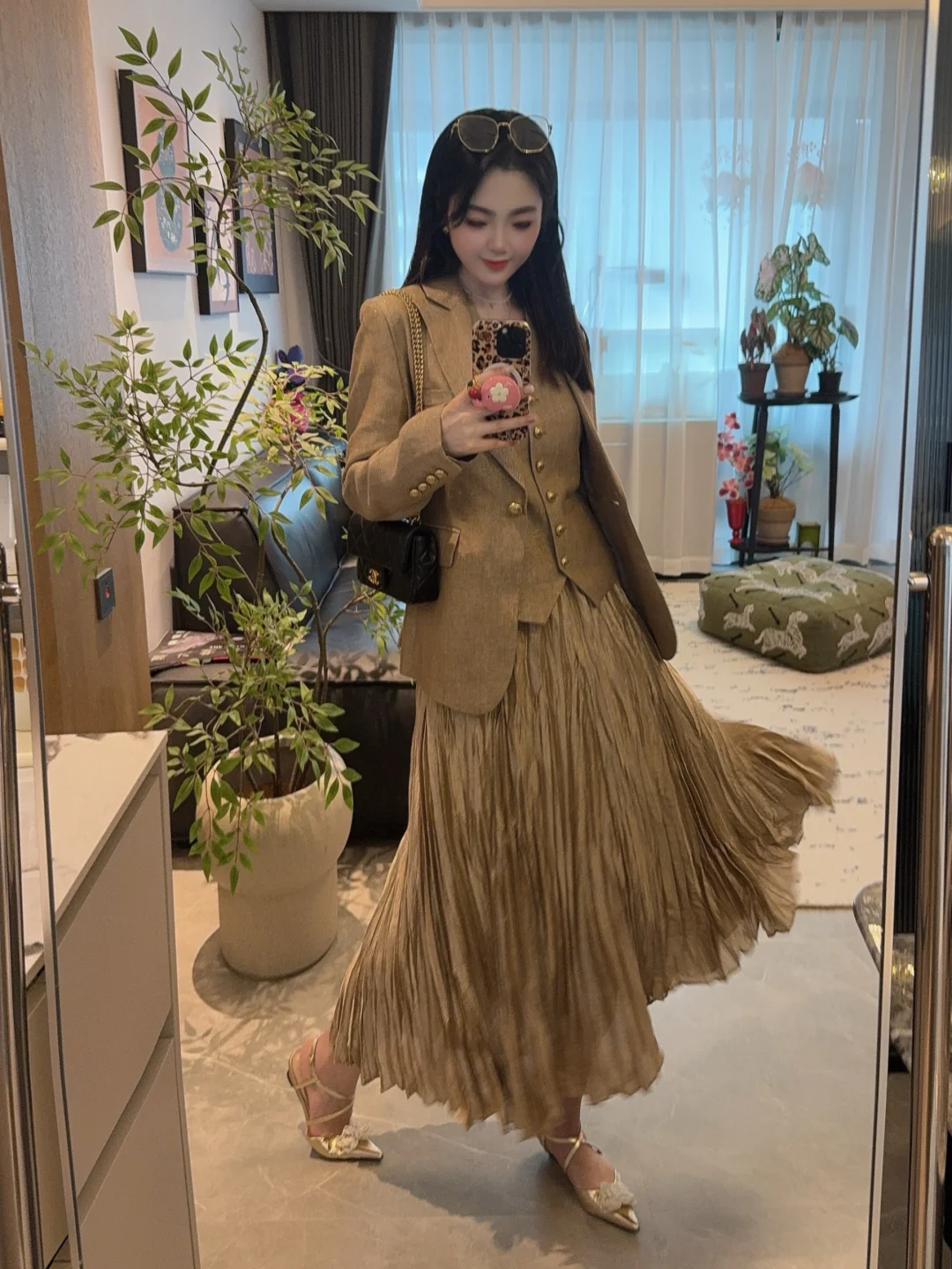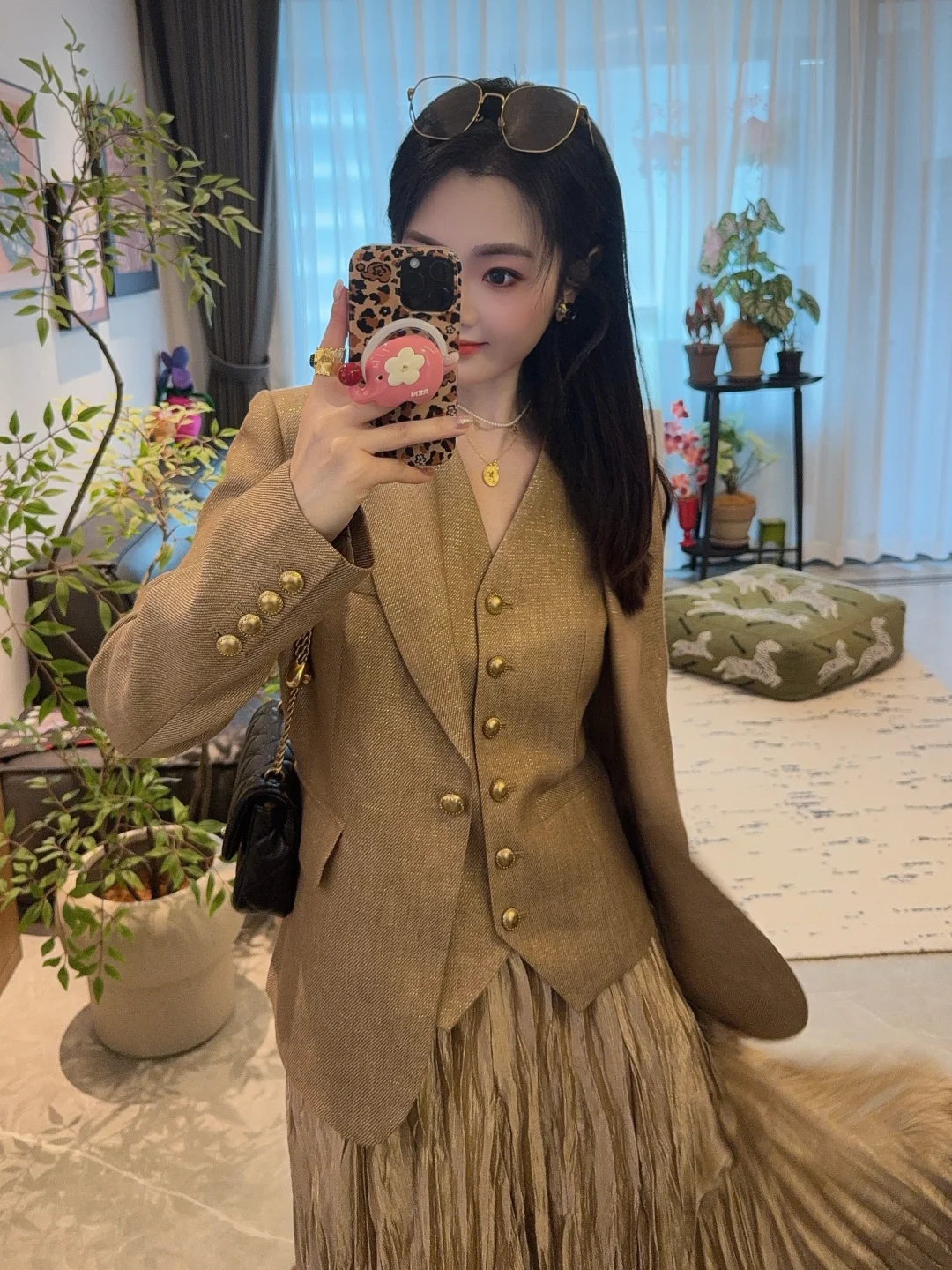 小香风西装阳光下自带细闪,低调又显贵~同色系马甲单穿也好看,叠穿层次感直接拉满!
