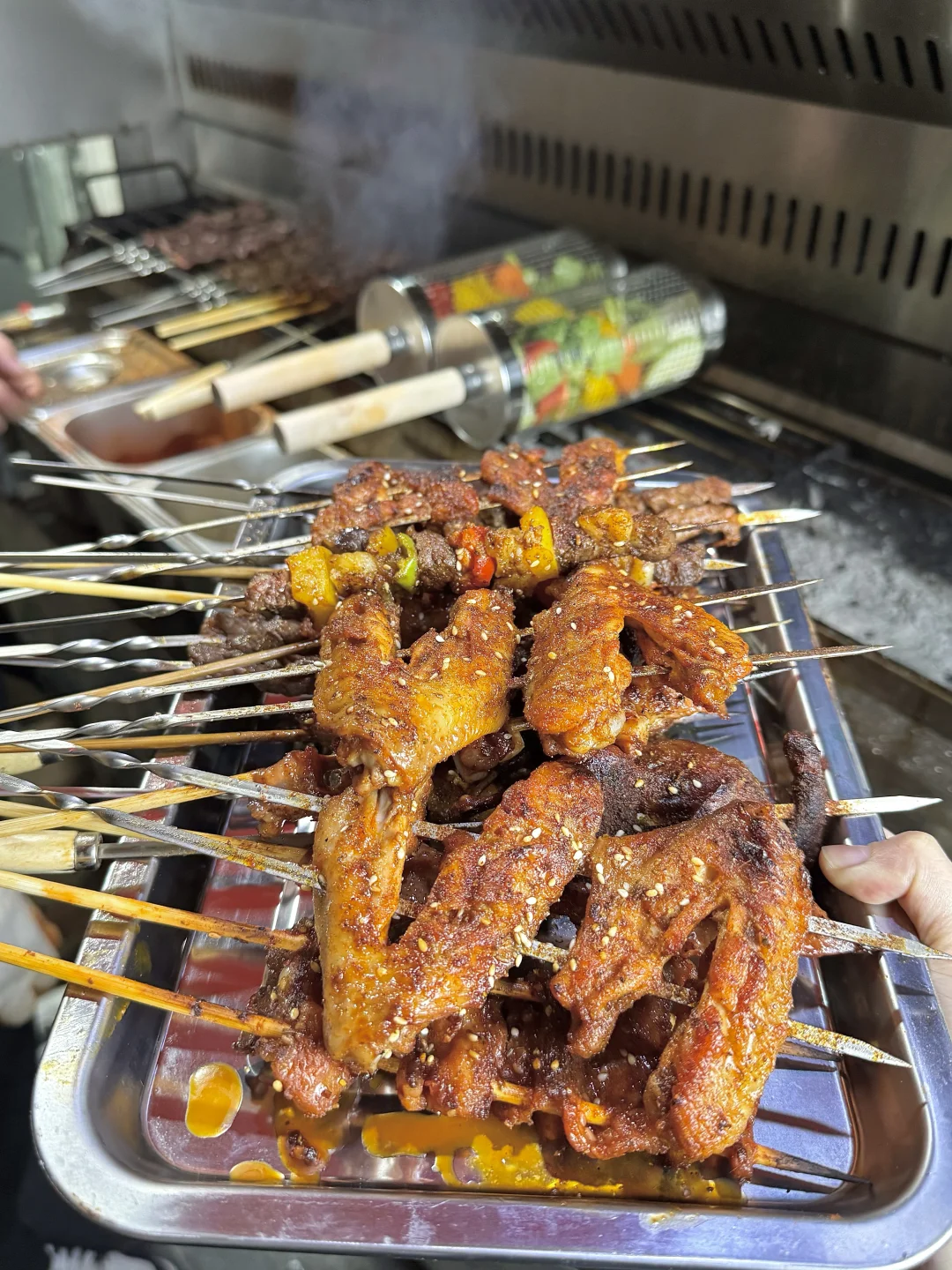 他们家主打现点现烤,菜刚端上来就很有那种热乎乎的烟火气,香味一飘过来,真的要流口水🤤
