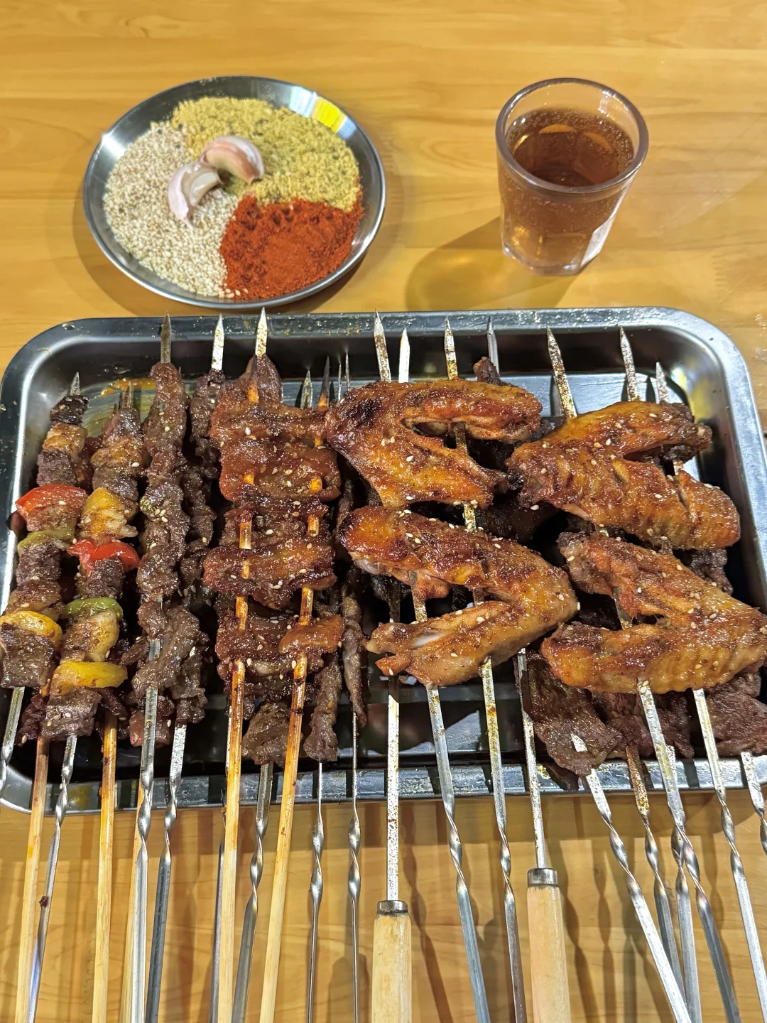 梅花肉串、大油边、烤鸡翅中、吊龙串这几样,我真的每次都会点,属于怎么吃都不会腻的类型。