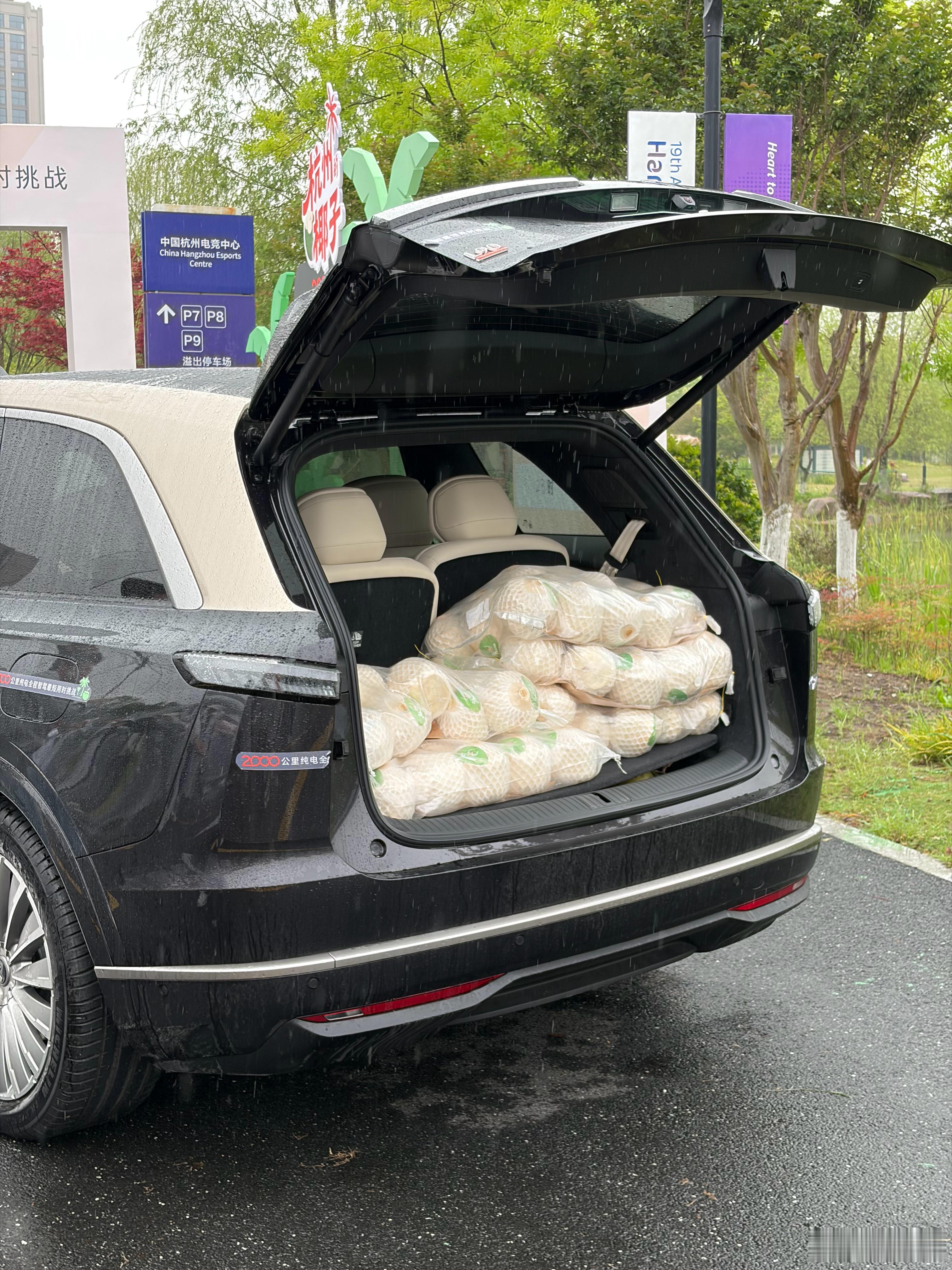 还有120kg的椰子负载累计负载350kg,装满了前备舱 后备箱