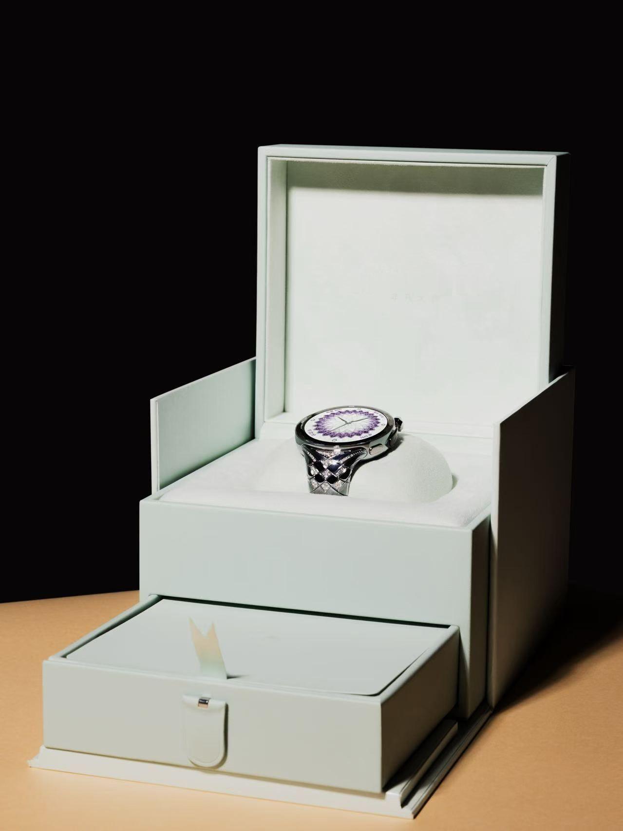 人的心情是可以突然变好的刘雯同款华为星钻手镯表来了!作为华为史上最贵手表,HUAWEI WATCH ULTIMATE DESIGN 非凡大师 星钻绽放款彻底打破"智能表不奢华"的偏见。携手国际著名珠宝设计师Francesca Amfitheatrof设计,将整块蓝宝石玻璃经多轴钻石刀切割机雕琢出60个钻石切面、180道棱边,配合沿斐波那契曲线镶嵌的98颗天然钻石,在腕间绽放春日光彩,29999定价背后,是腕上星闪车钥匙与智能迎宾语的从容,是eSIM独立通话的无焦虑体验,更是首款真正懂女性身心节律的智慧高定。