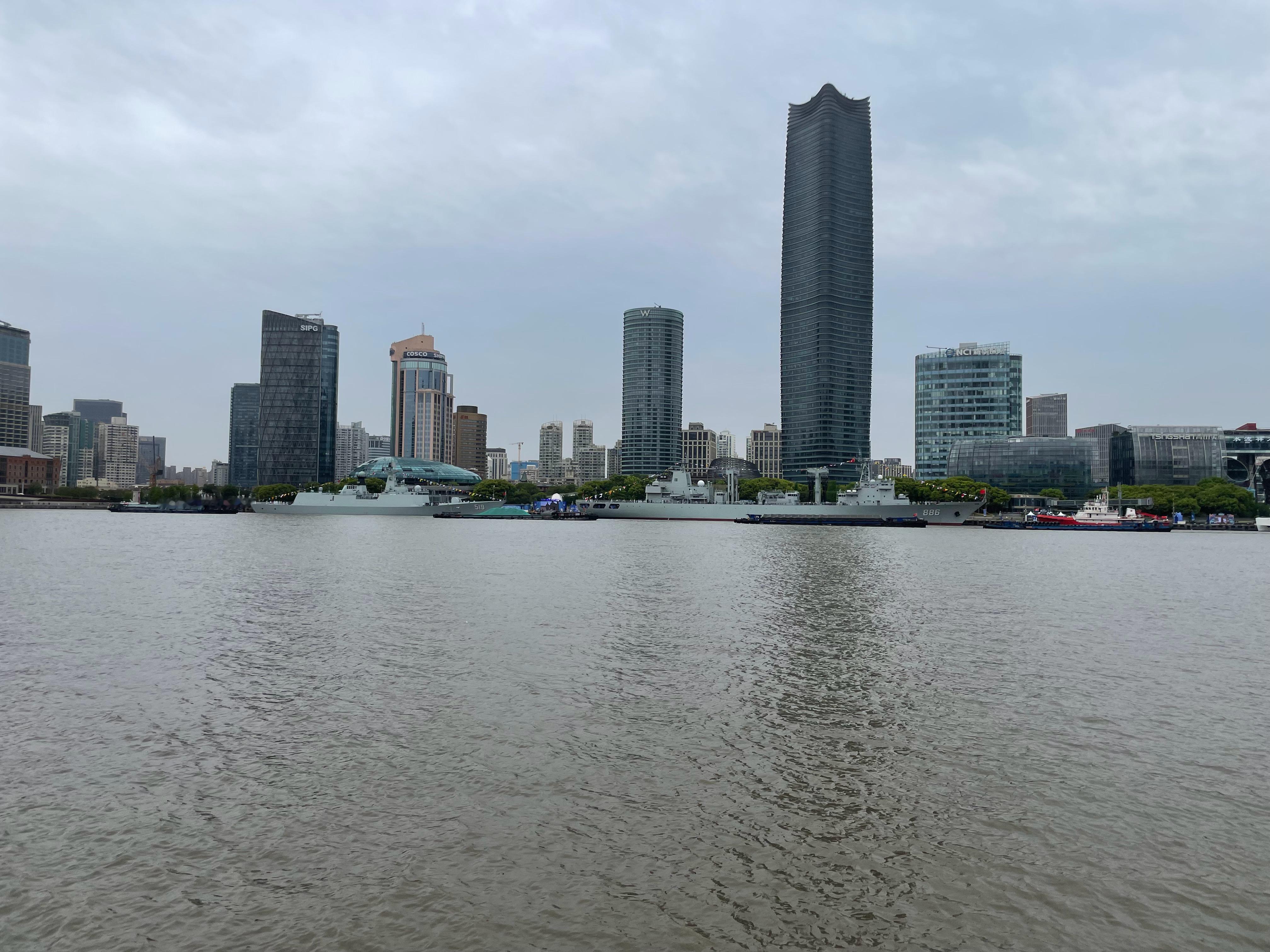 黄浦江畔的两艘大军舰在供上海市民参观!