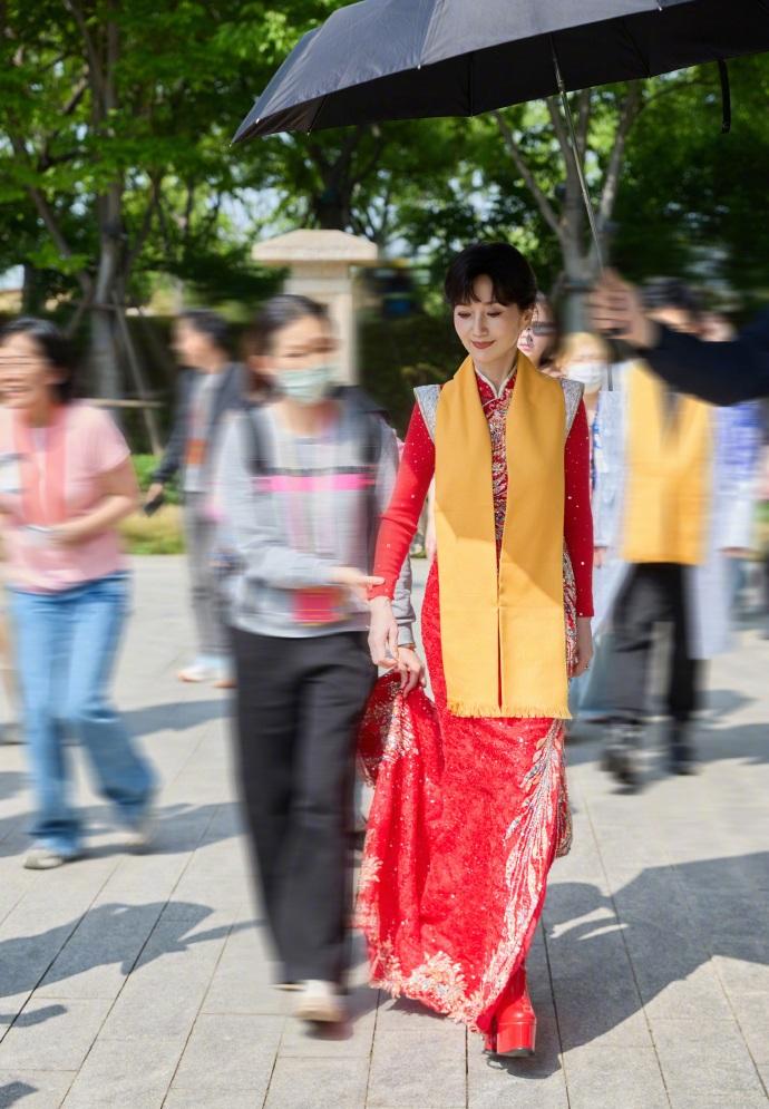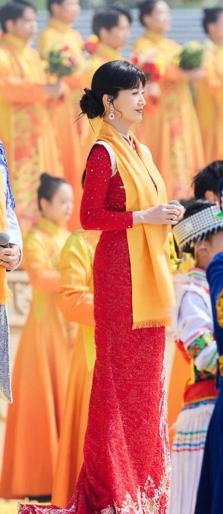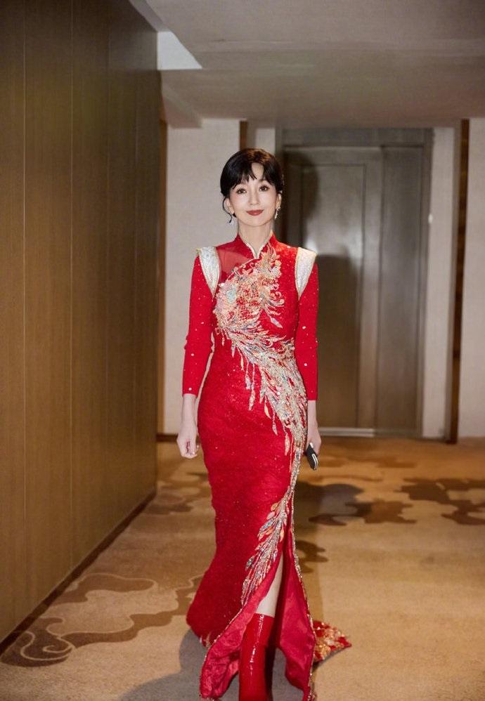 赵雅芝穿了一件大红色的凤纹旗袍,凸显出了艳丽迷人的气质,确实是太美了。