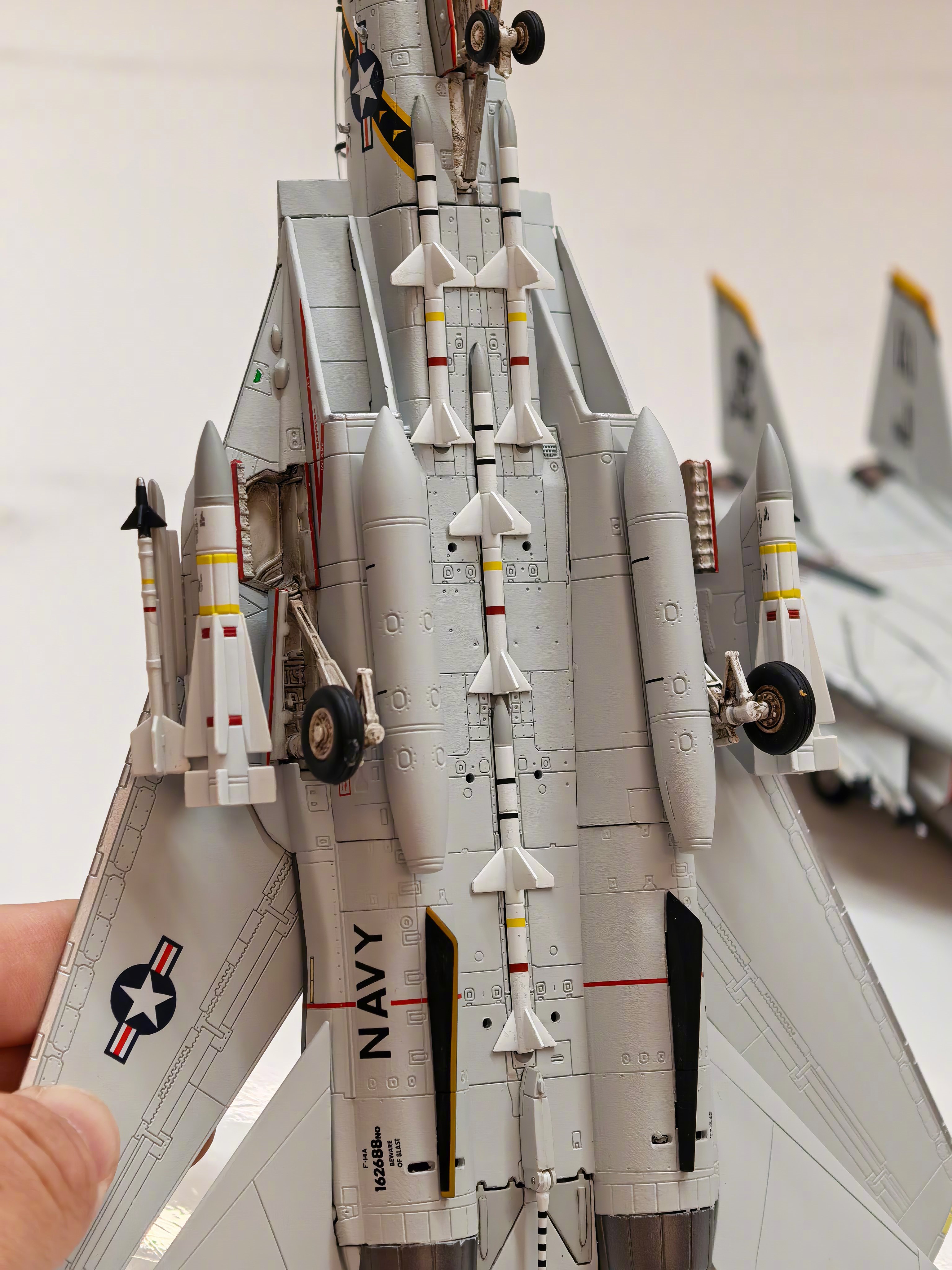 朋友知道我喜欢F-14又送我一架,回家一看,家里有个一模一样的。那就把两架武器挂