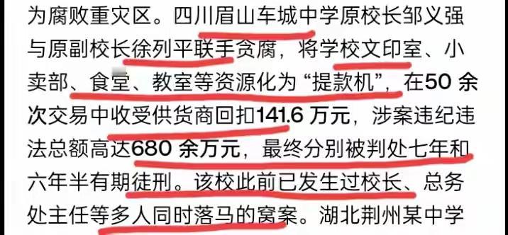 学校本来就是教育育人,但作为校方的领导层却把学校的食堂,校服的采购,教辅材料,教学设备,教学工程项目,等等都变成捞钱的工具!