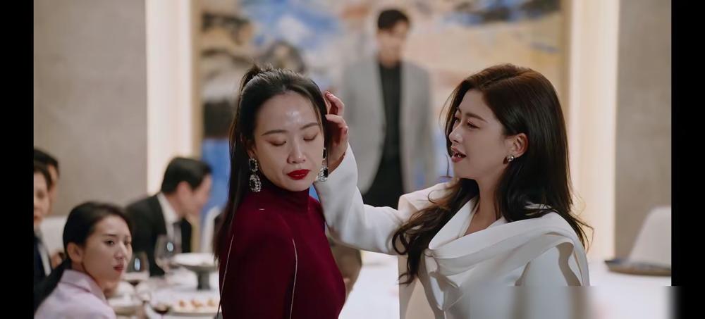 再看李梦,满脸油光,法令纹不遮,大红唇俗气。这不是化妆师手滑,而是用妆容给你写人物小传:一个野心勃勃、急于求成的女人,就该是这个样子。