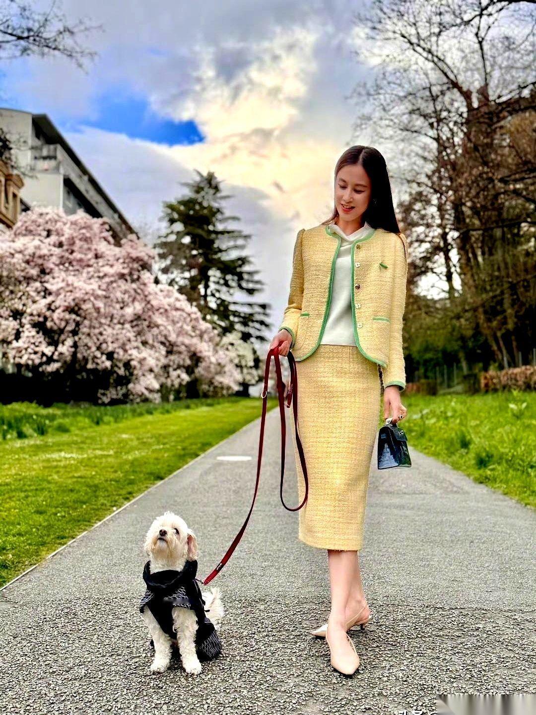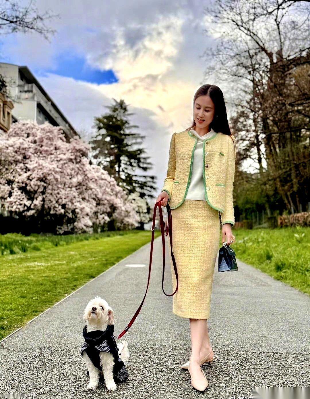 现在的黄圣依,在瑞士街头遛着狗,手里举着冰淇淋,坐在高铁上晃晃悠悠。