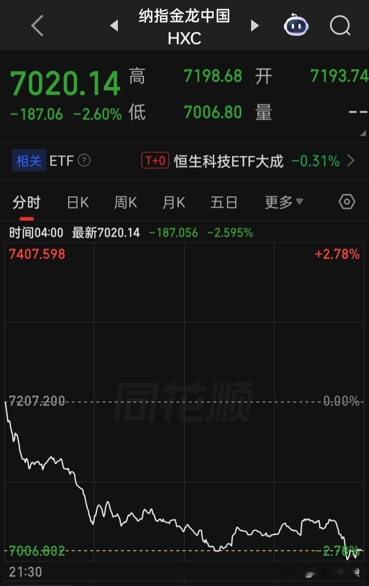 【2026.04.21】特朗普称预计停火到期后将继续轰炸伊朗。特朗普提名的美联储主席人选凯文.沃什表示,美联储需要一套新的框架来应对持续性的通胀,如获确认出任美联储主席,将保持独立立场,不受行政当局干预。金银跳水原油拉升。美三大指高开低走,收盘齐跌,个股跌多涨少,“新能源汽车、医疗保险、固态硬盘、能源设备及服务、汽车、石油与天然气”等板块概念涨幅在前,“微软”涨1.46%,“亚马逊”涨0.66%,“思科”涨2.27%再创新高,“甲骨文”涨2.02%,“希捷科技”涨3.73%再创历史新高,“西部数据”涨2.59%再创历史新高,“迈威尔科技”涨2.35%再创历史新高,“联合健康”涨7.01%“Lumentum控股(光模块巨头)”跌6.50%,“Applovin(AI广告引擎)”跌3.62%,“ServiceNow(AI平台提供商)”涨13.15%,“稳定币第一股ICircle”跌9.74%,“Swarmer(无人机技术)”涨13.15%,“纳指金龙中国”低开低走,跌2.60%,“阿里巴巴”跌3.42%,“拼多多”跌5.00%,“百度”跌3.33%,“尉来”跌3.30%,“哗哩哗哩”跌6.41%,腾讯音乐”跌4.65%,“海川证券”涨3.44%,美元、离岸人民币、黄金、白银、原油涨跌幅表现