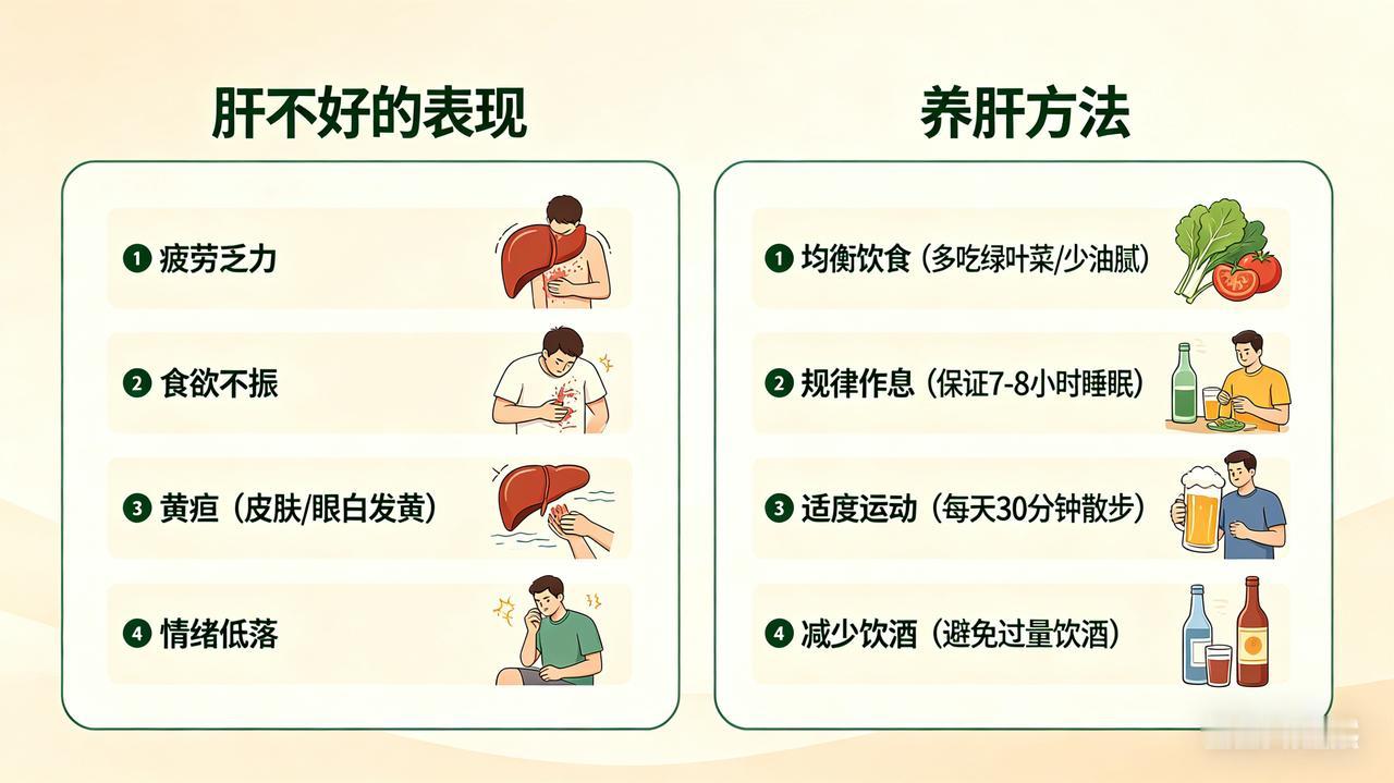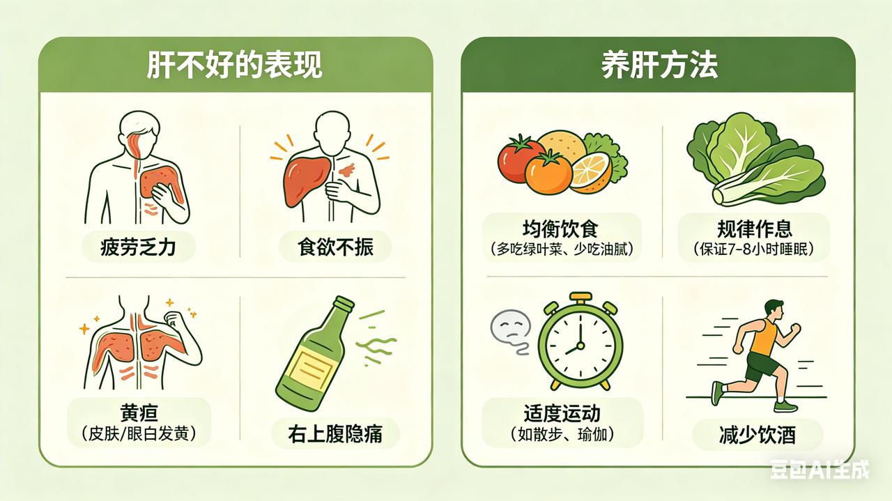 养肝没有捷径,贵在坚持好习惯。如果出现持续乏力、黄疸等症状,请及时就医检查肝功能。