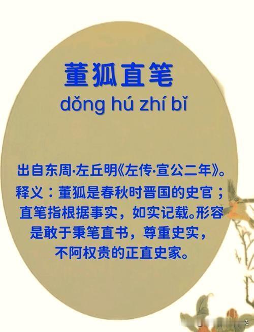 “董狐直笔”成语出自《左传》,发明者是史官董狐,指敢于秉笔直书、尊重事实、不畏权贵的政治史家。
