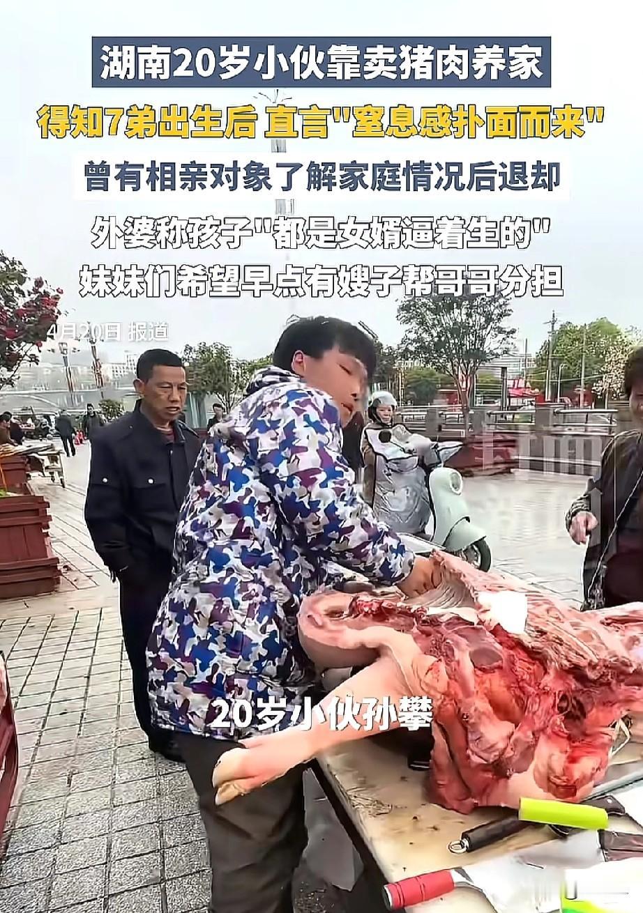 湖南,20岁小伙靠着卖猪肉来养6个弟弟妹妹,得知父母又生了7弟,又生气又无奈,而妹妹却想要哥哥早点结婚,找个嫂子过来帮忙。