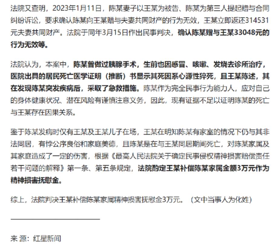 出事之后,男子的家人得知真相,不仅要承受失去亲人的痛苦,还要面对这不堪的事实,心里的滋味可想而知。而那位女子,也因为这场不正当的关系,卷入了纠纷。