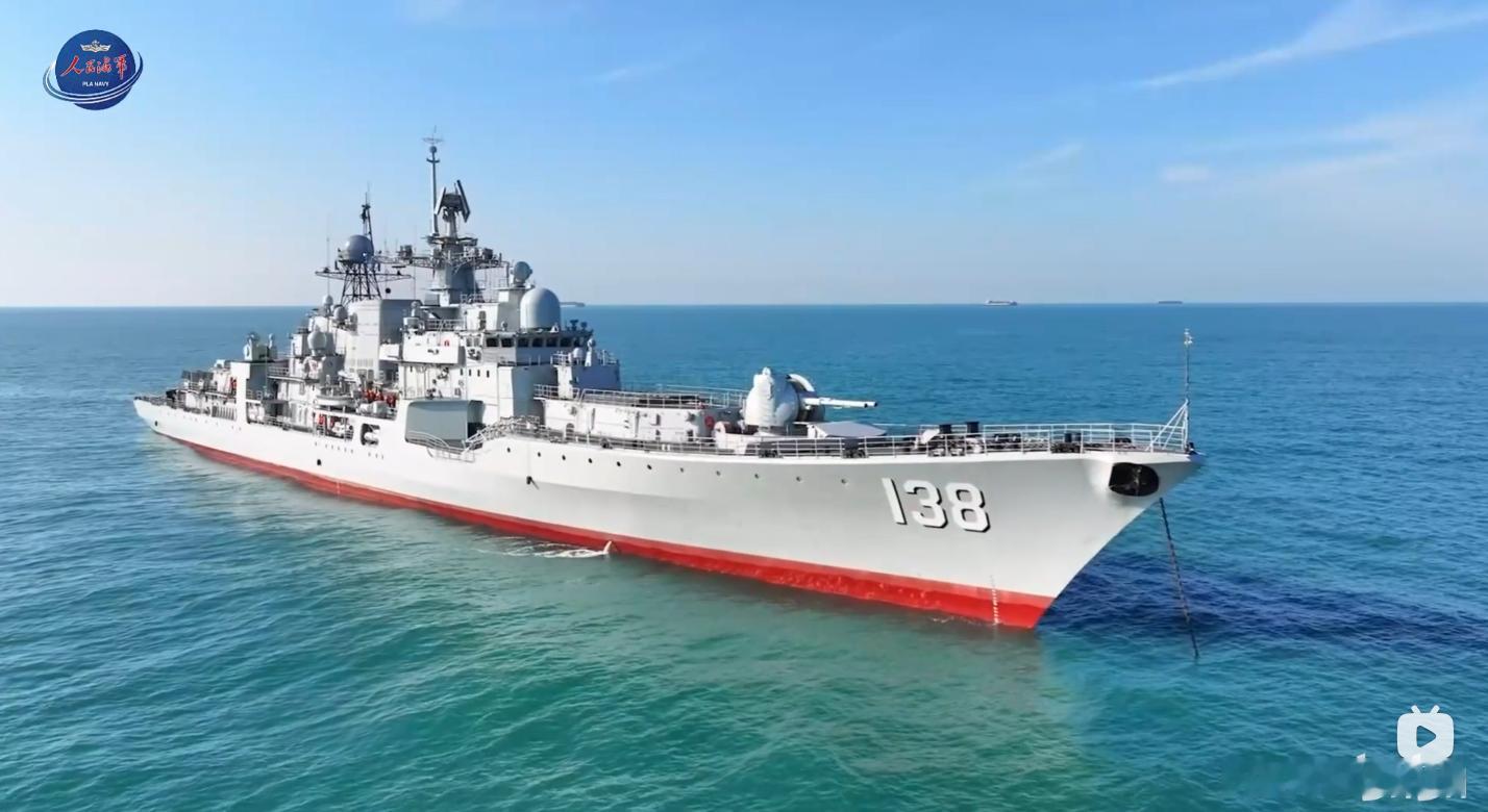 官方画面,055万吨大驱与052D驱逐舰同同框俯视图对比,两者大小、设计方面的差