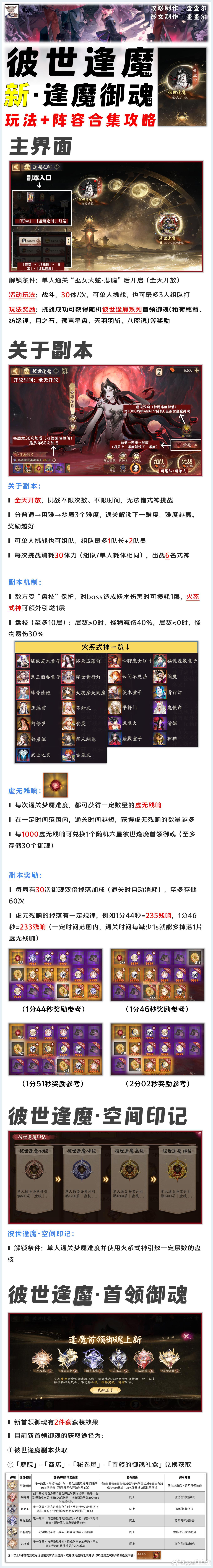 阴阳师手游超话创作官acg优创官 【彼世逢魔】保姆级全攻略+热门问题解答+6式神预设保存小技巧■常驻副本+全天开放,可单人、可组队(至多3人)■火系式神是该副本当下的最优解■御魂介绍图一最后有,御魂就业以及要不要刷相关解答需要再等等,等正式服开发开发,现在拿不准
