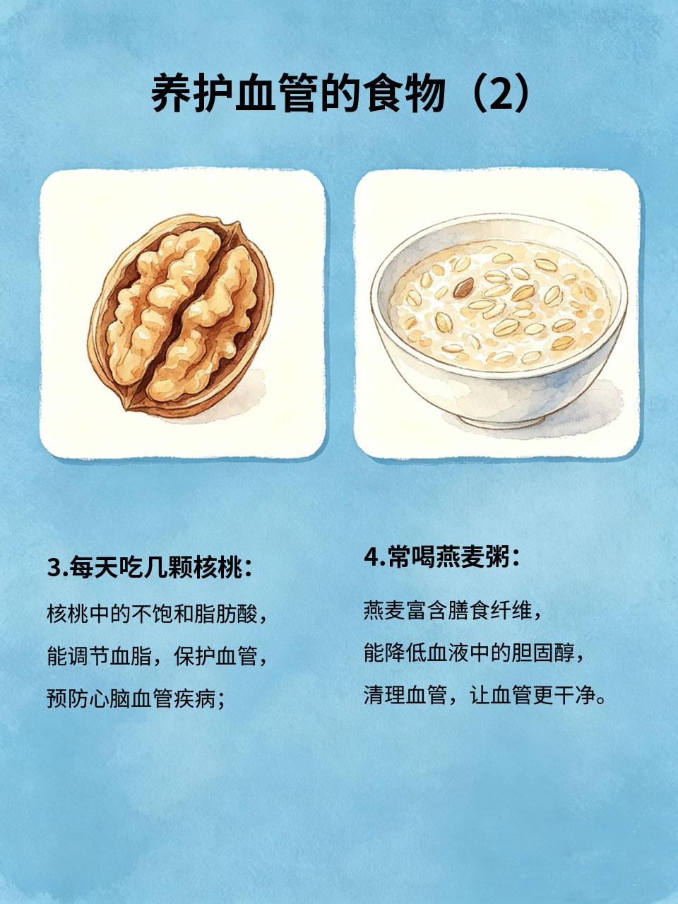 血管养护不是一蹴而就,日常饮食多注意,多吃这几样食物,少吃高油、高盐、高糖食物,坚持下来,血管干净,心脏健康,才能安享晚年。
