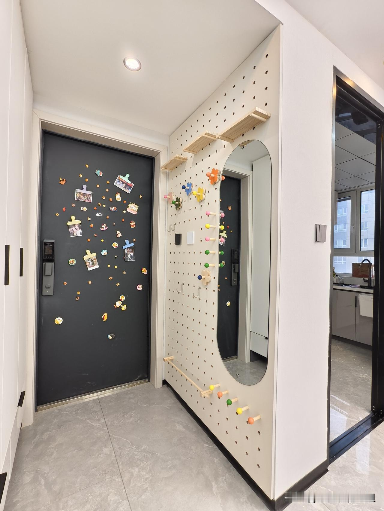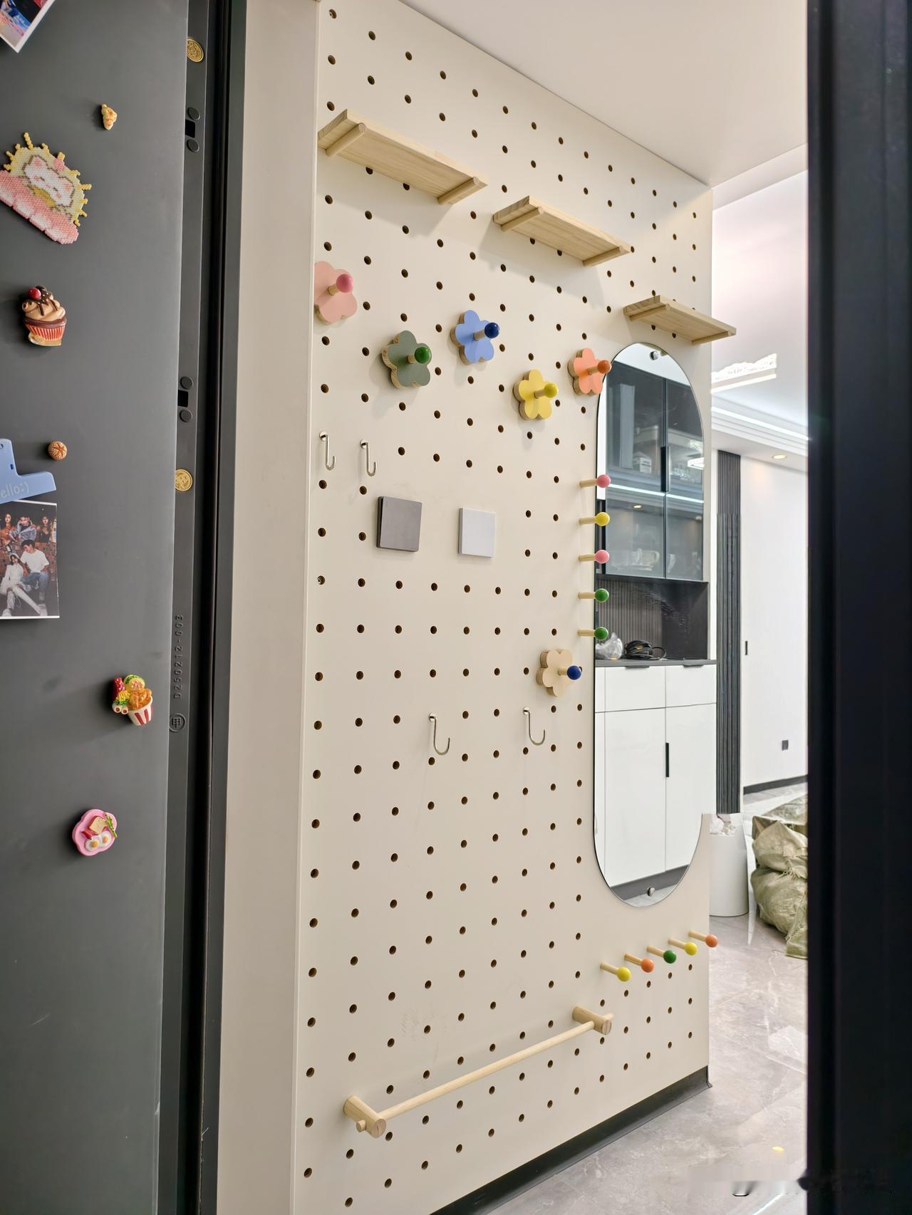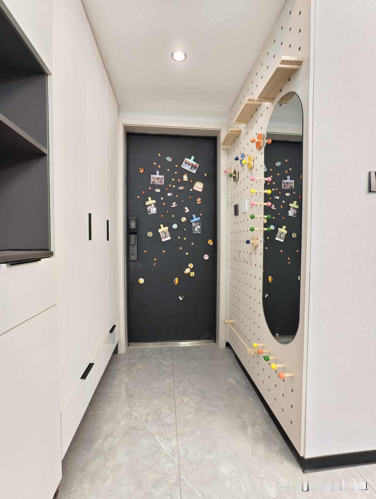 对面的墙我们设计了洞洞板和穿衣镜,三平方的空间完美利用[烟花][烟花]