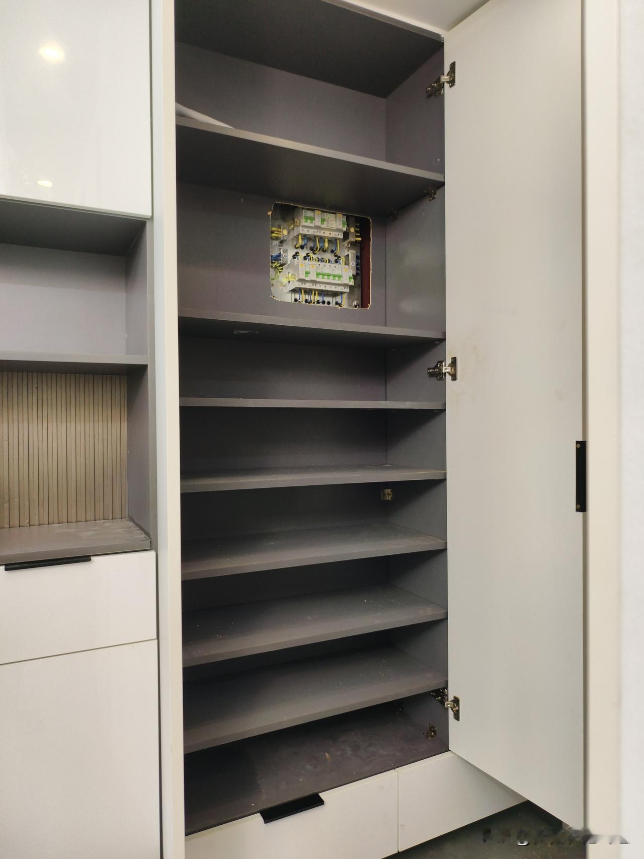这家粉丝刚买的二手房,鞋柜设计不合理,没有地方放鞋子,一直在酒柜里面塞着,做了层板,新换了门板,储物空间加倍。