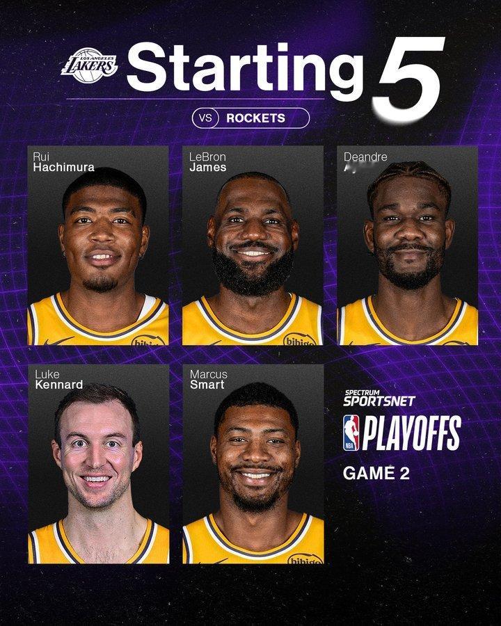 湖人首发:詹姆斯、肯纳德、斯玛特、八村塁、艾顿火箭首发:杜兰特、奥科吉、阿门、史密斯、申京自带浏览器打开📺网页链接