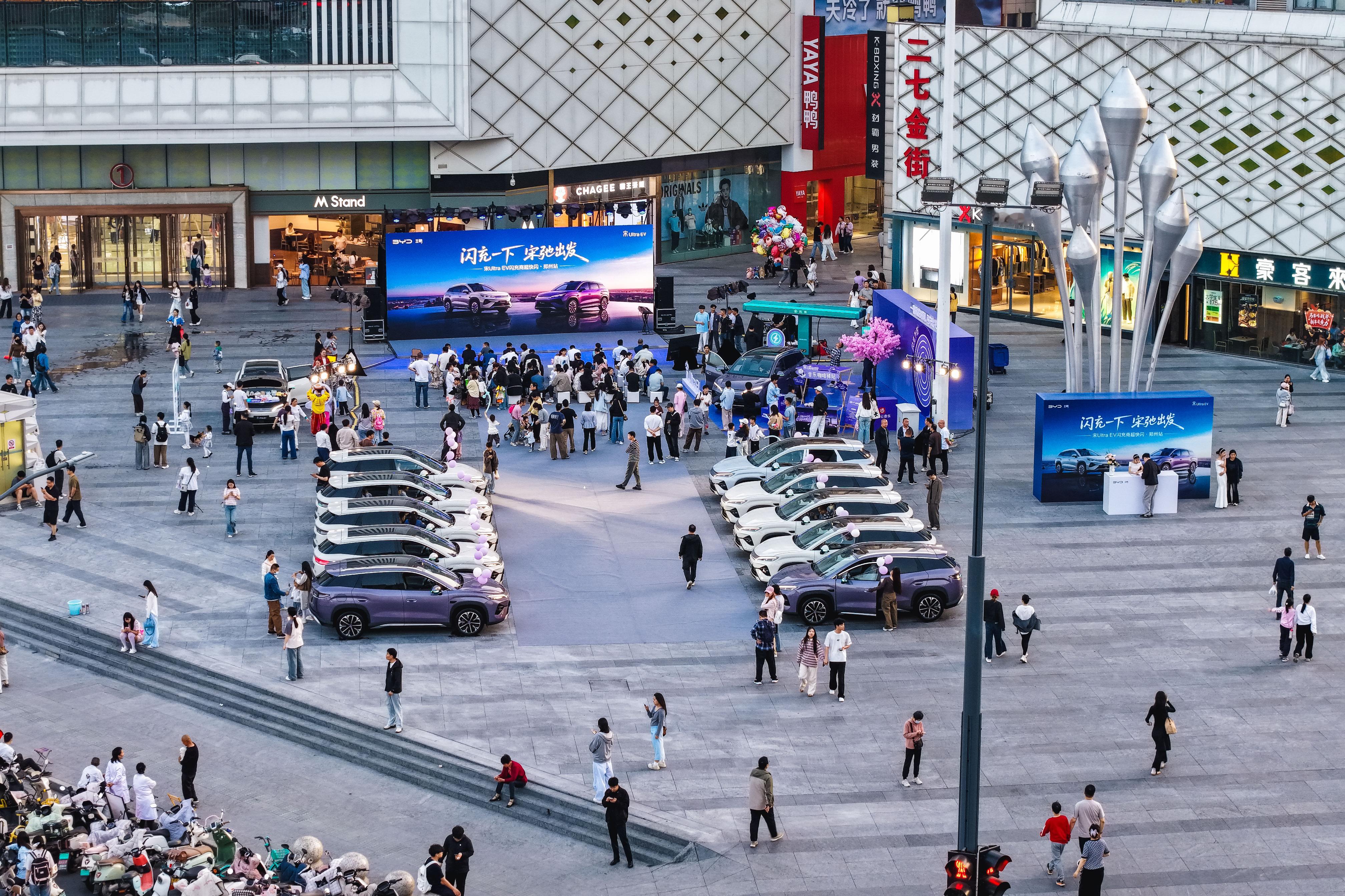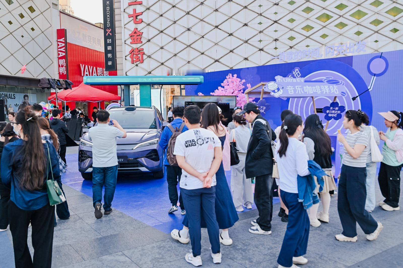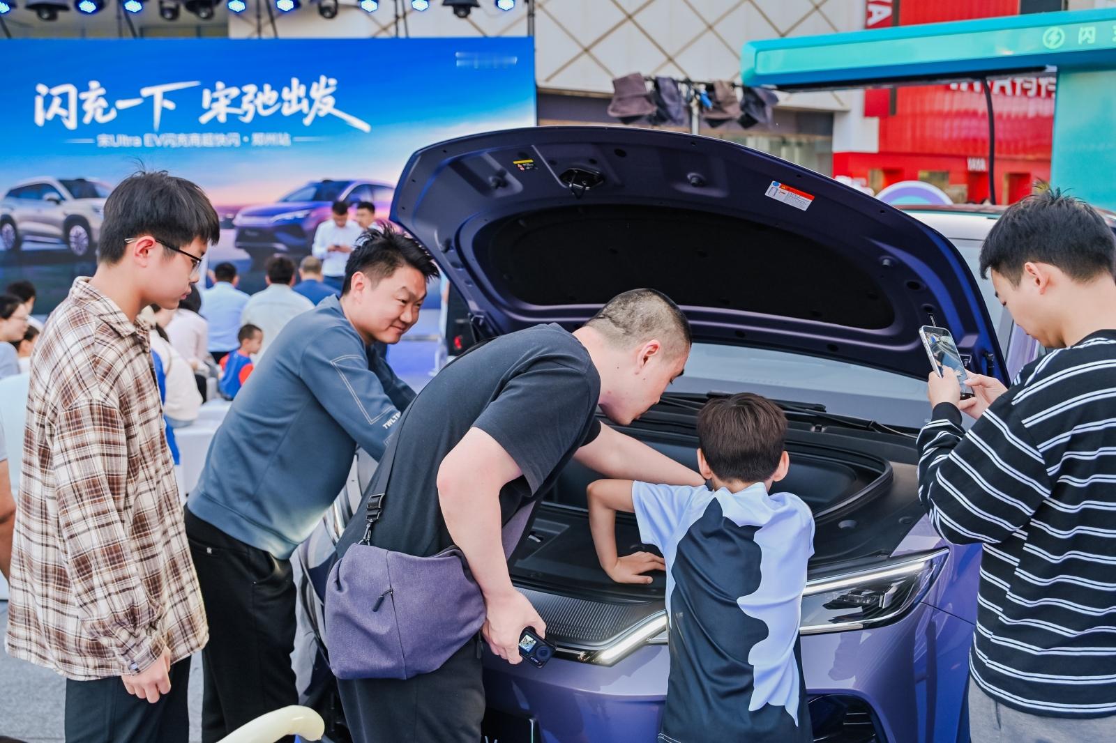 宋Ultra EV闪现郑州二七万达,一首歌的时间满电出发!4月18日,二七万达直接被闪充蓝包围了,现场吸引了不少朋友来参加宋Ultra EV快闪,一起见证充电比加油还快到底有多离谱。